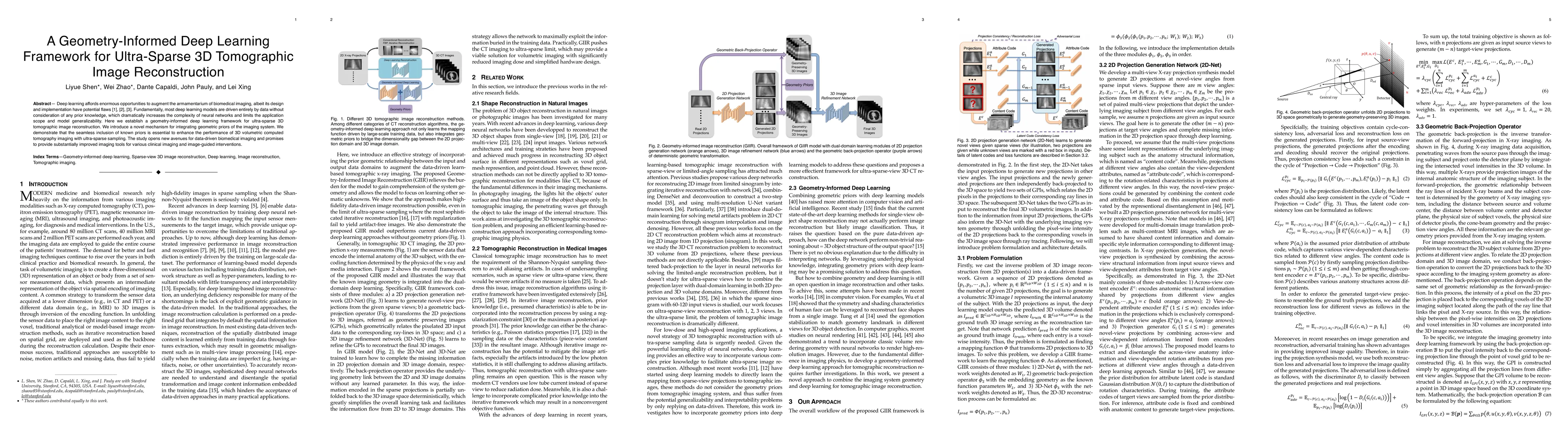 This paper proposes a geometry-informed deep learning framework to enhance ultra-sparse 3D tomographic image reconstruction by integrating geometric priors of the imaging system, thereby improving model performance and generalizability. The approach promises better imaging tools for clinical applications.