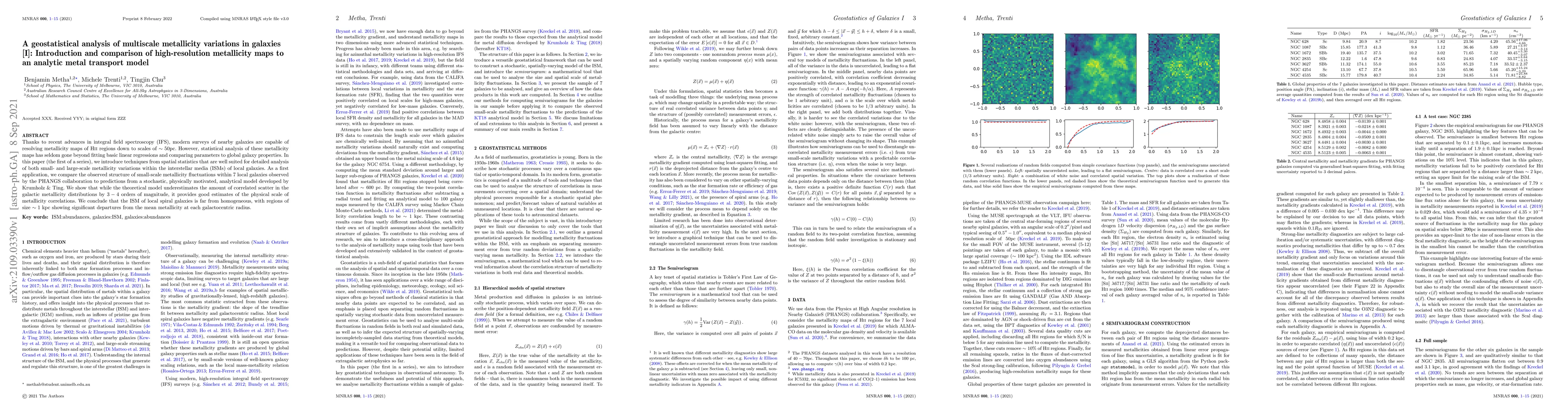 This paper introduces advanced geostatistical methods to analyze metallicity variations in nearby galaxies, comparing high-resolution maps from IFS to a theoretical metal transport model. The study finds that while the model captures the scale of metallicity correlations, it significantly underestimates the observed scatter in metallicity distributions.