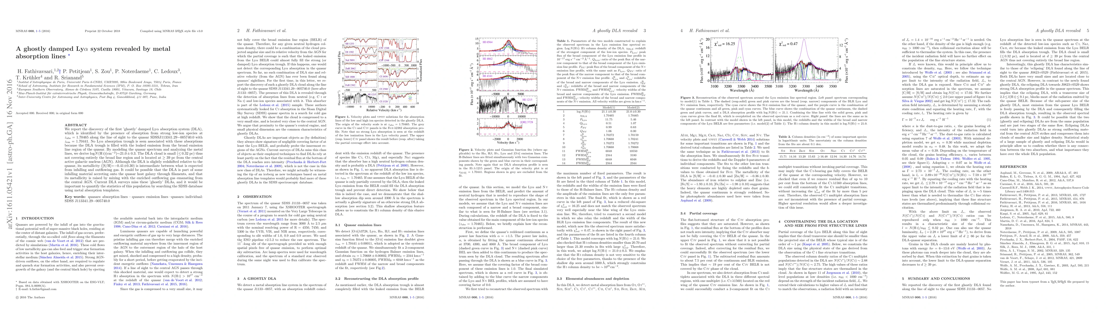 This paper reports the discovery of a unique 'ghostly' damped Ly$\alpha$ absorption system (DLA) identified by strong low-ion species at $z_{\rm abs}=1.70465$, with no visible Ly$\alpha$ trough due to emission leakage from the quasar's broad emission line region. The study suggests the DLA may be part of infalling material accreting onto the quasar host galaxy.
