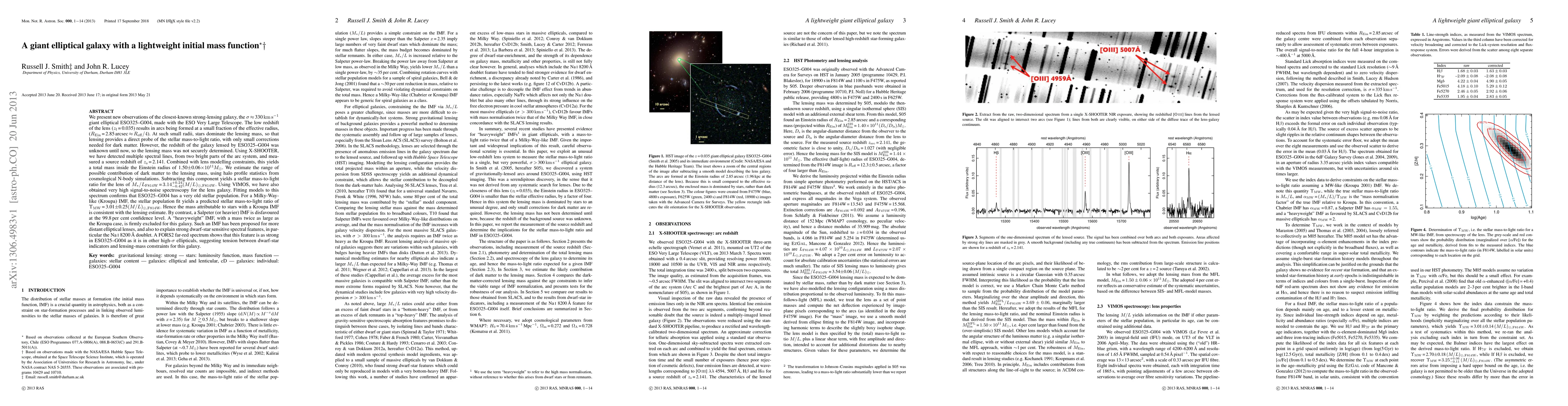 We present new VLT observations of the closest-known strong-lensing galaxy, the sigma=330 km/s giant elliptical ESO325-G004. The low redshift of the lens (z_lens=0.035) results in arcs being formed at a small fraction of the effective radius, (R_Ein ~ R_Eff/4). At such small radii, stars dominate the lensing mass, so that lensing provides a direct probe of the stellar mass-to-light ratio, with only small corrections needed for dark matter. The redshift of the galaxy lensed by ESO325-G004 was unknown until now, so the lensing mass was not securely determined. Using X-SHOOTER, we measure a secure source redshift of z_src=2.141. Combined with the lensing configuration, this yields a total mass inside the Einstein radius of (1.50+/-0.06) 10^11 M_sun. We estimate the range of possible contribution of dark matter to the lensing mass, using statistics from cosmological N-body simulations. Subtracting this component yields a stellar M/L ratio for the lens of 3.14^+0.24_-0.42 (M/L)_sun (in F814W band). Using VIMOS, we have also obtained very high-S/N spectroscopy for the lens galaxy. The VIMOS data confirm that ESO325-G004 has a very old stellar population. For a Kroupa IMF, the stellar population fit yields a predicted stellar M/L ratio of 3.01+/-0.25 (M/L)_sun. Hence the mass attributable to stars with this IMF is consistent with the lensing estimate. By contrast, a Salpeter or heavier IMF is disfavoured at the 99.8% confidence level. A "heavyweight" IMF, with a mass twice as large as the Kroupa case, is firmly excluded. Such an IMF has been proposed for more distant elliptical lenses, and also to explain strong dwarf-star spectral features, in particular the NaI 8200-Ang doublet. A FORS2 far-red spectrum shows that this feature is as strong in ESO325-G004 as it is in other high-sigma ellipticals, suggesting tension between dwarf-star indicators and lensing-mass constraints for this galaxy.