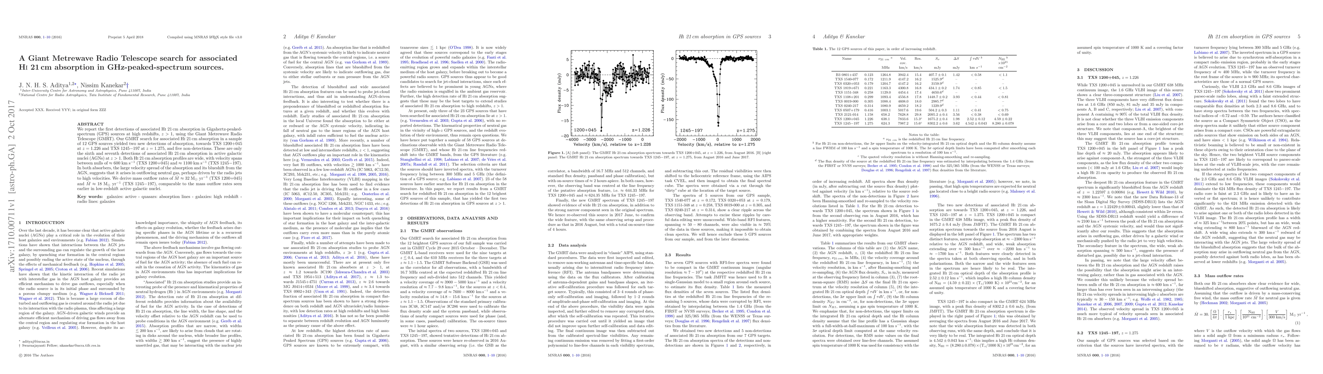 The Giant Metrewave Radio Telescope (GMRT) detected H{\sc i} 21\,cm absorption in two high-redshift Gigahertz-peaked-spectrum (GPS) sources, marking only the sixth and seventh such detections in active galactic nuclei (AGNs) at $z > 1$. The absorption suggests outflowing neutral gas driven by radio jets, with mass outflow rates comparable to those seen in low-redshift AGNs.