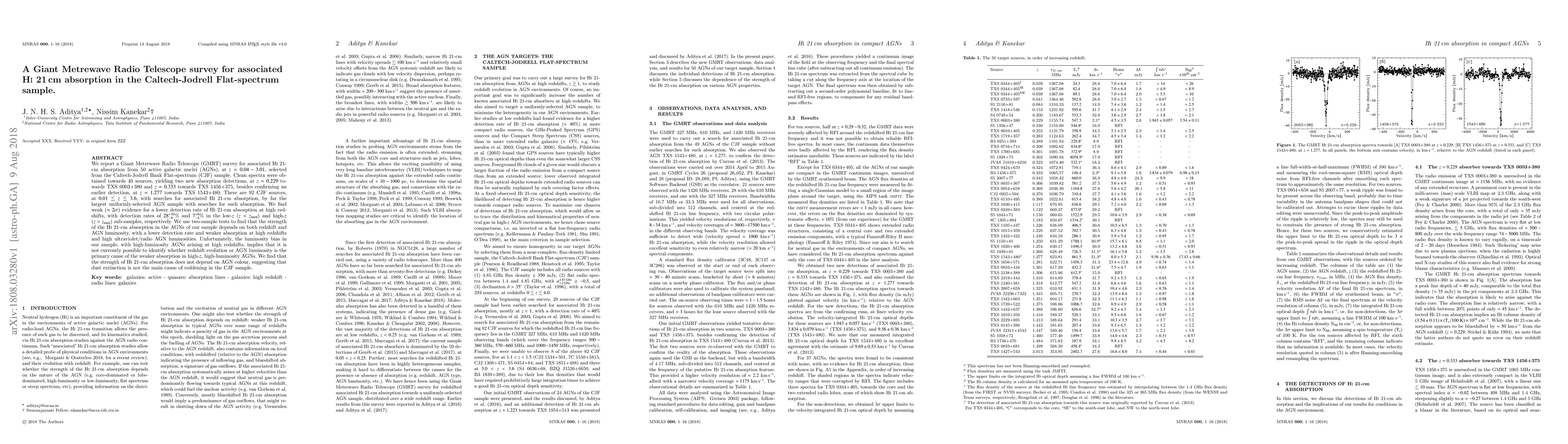 This GMRT survey of 50 AGNs from the CJF sample detected HI 21-cm absorption in three sources, revealing a lower detection rate and weaker absorption at high redshifts and high AGN luminosities. The study suggests that the cause of weaker absorption in high-$z$, high-luminosity AGNs remains unclear due to luminosity bias.
