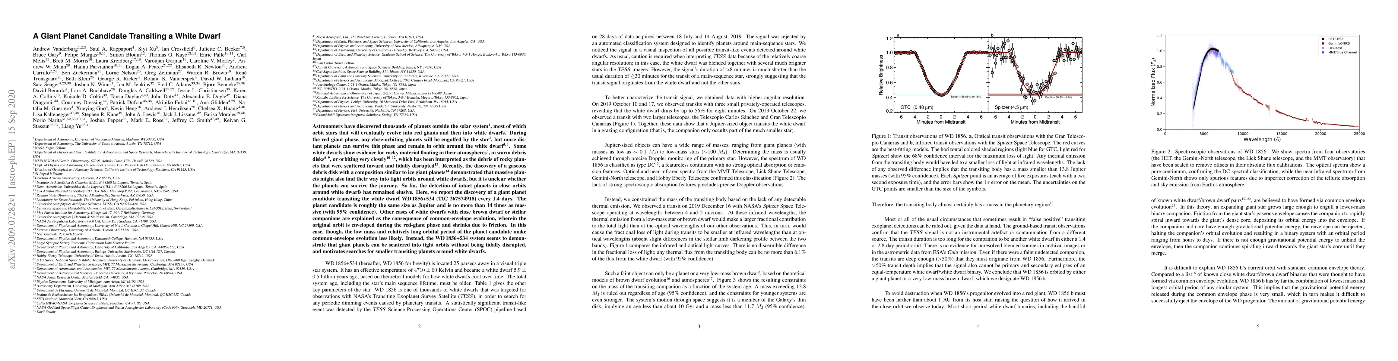 Astronomers discovered a giant planet candidate transiting the white dwarf WD 1856+534, suggesting that giant planets can survive and migrate into tight orbits around white dwarfs without disruption. This finding challenges common-envelope evolution explanations and opens new avenues for detecting smaller planets around white dwarfs.