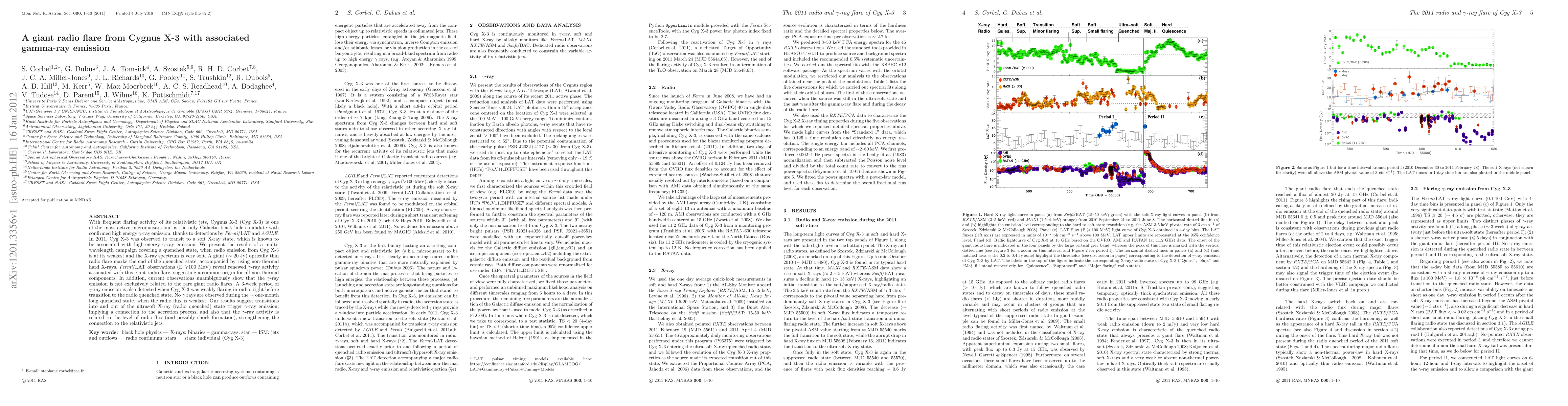 This study reports a giant radio flare from Cygnus X-3 accompanied by renewed Gamma-ray activity detected by Fermi/LAT, suggesting a common origin for the non-thermal components. Observations indicate that Gamma-ray emissions are linked to transitions in the ultrasoft X-ray state and the level of radio flux, highlighting the connection to the accretion process and relativistic jets.