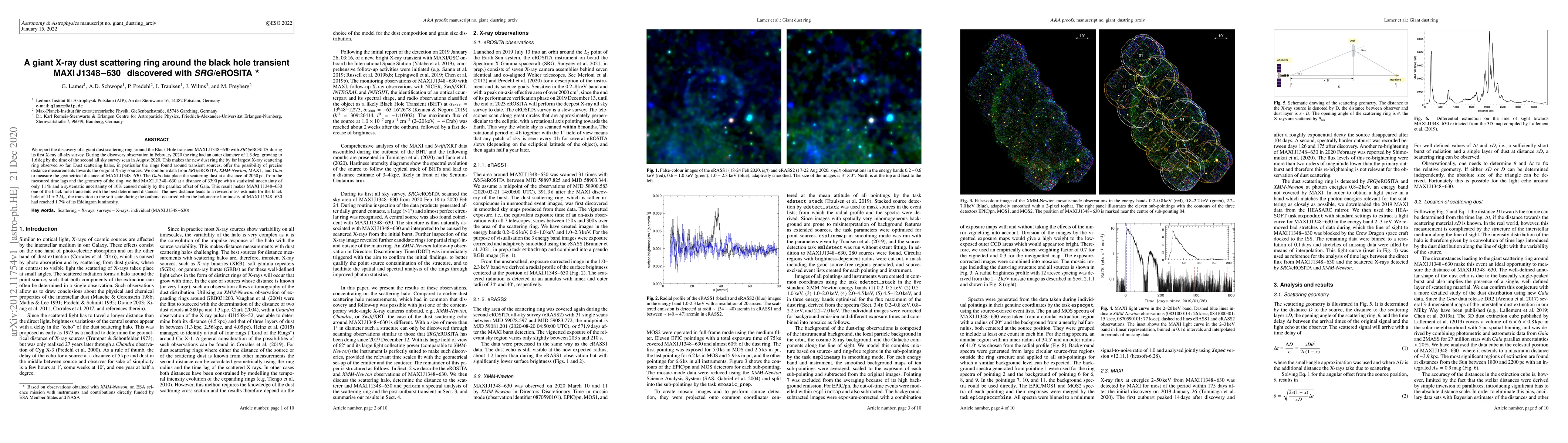Researchers discovered a giant X-ray dust scattering ring around the black hole transient MAXI J1348-630 using SRG/eROSITA, measuring its diameter at 1.3 to 1.6 degrees. This ring provides a precise distance measurement, placing the source at 3390 pc with minimal uncertainties, leading to a revised black hole mass estimate of 11+-2 solar masses.