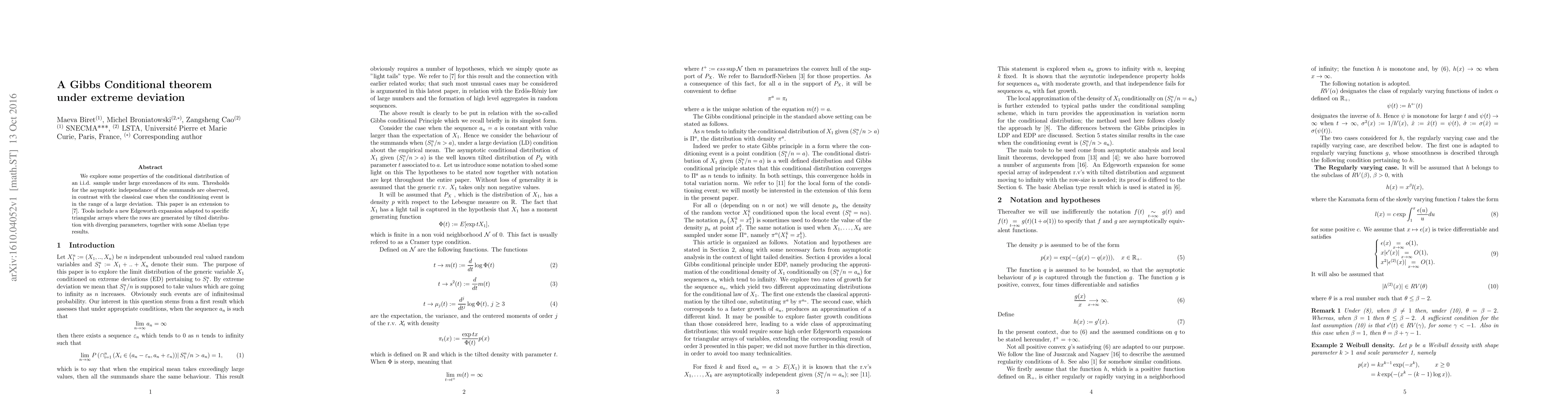 We explore some properties of the conditional distribution of an i.i.d. sample under large exceedances of its sum. Thresholds for the asymptotic independance of the summands are observed, in contrast with the classical case when the conditioning event is in the range of a large deviation. This paper is an extension to [7]. Tools include a new Edgeworth expansion adapted to specific triangular arrays where the rows are generated by tilted distribution with diverging parameters, together with some Abelian type results.