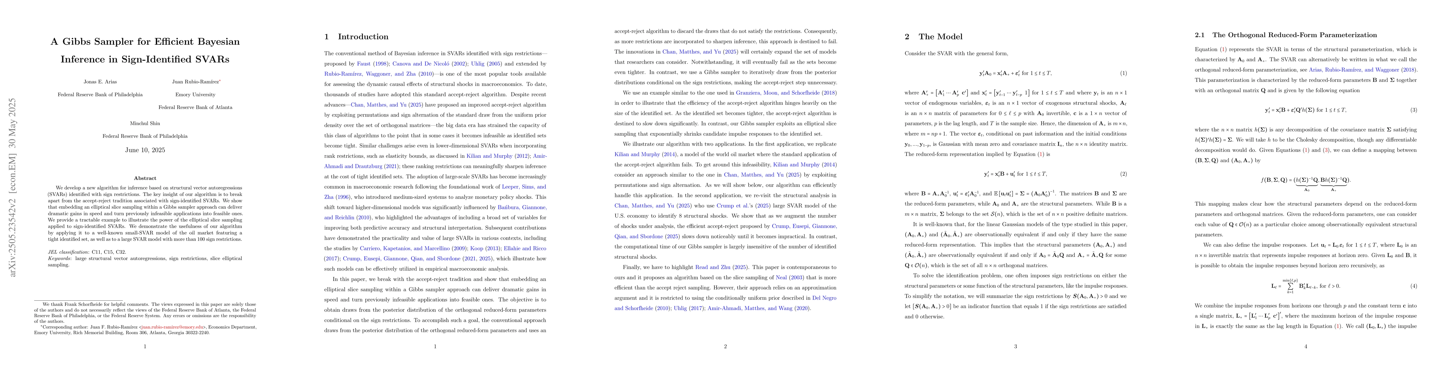 Researchers develop an efficient algorithm for Bayesian inference in SVARs with sign restrictions, using a Gibbs sampler approach combined with elliptical slice sampling to speed up calculations.