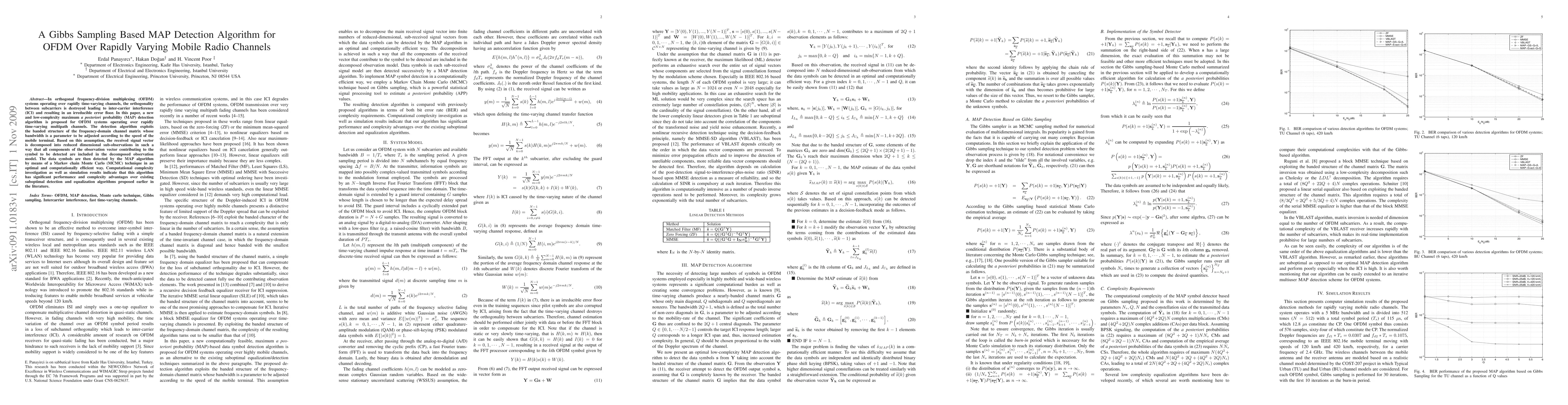In orthogonal frequency-division multiplexing (OFDM) systems operating over rapidly time-varying channels, the orthogonality between subcarriers is destroyed leading to inter-carrier interference (ICI) and resulting in an irreducible error floor. In this paper, a new and low-complexity maximum {\em a posteriori} probability (MAP) detection algorithm is proposed for OFDM systems operating over rapidly time-varying multipath channels. The detection algorithm exploits the banded structure of the frequency-domain channel matrix whose bandwidth is a parameter to be adjusted according to the speed of the mobile terminal. Based on this assumption, the received signal vector is decomposed into reduced dimensional sub-observations in such a way that all components of the observation vector contributing to the symbol to be detected are included in the decomposed observation model. The data symbols are then detected by the MAP algorithm by means of a Markov chain Monte Carlo (MCMC) technique in an optimal and computationally efficient way. Computational complexity investigation as well as simulation results indicate that this algorithm has significant performance and complexity advantages over existing suboptimal detection and equalization algorithms proposed earlier in the literature.