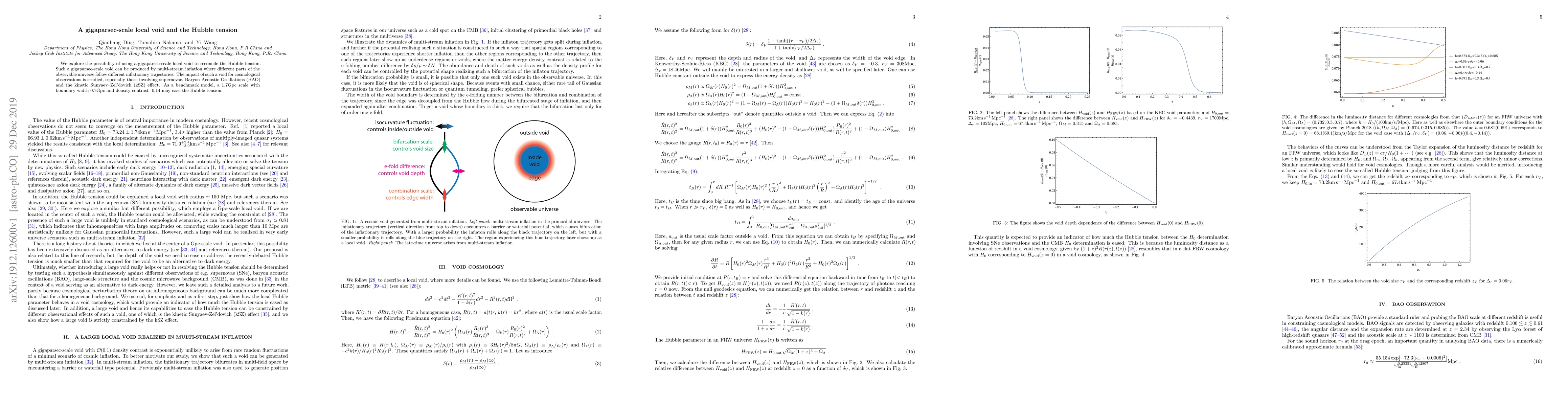 This paper investigates whether a gigaparsec-scale local void could help resolve the Hubble tension by examining its effects on cosmological observations, including supernovae, BAO, and kSZ. A benchmark model suggests a 1.7Gpc scale void with a density contrast of -0.14 may alleviate this tension.