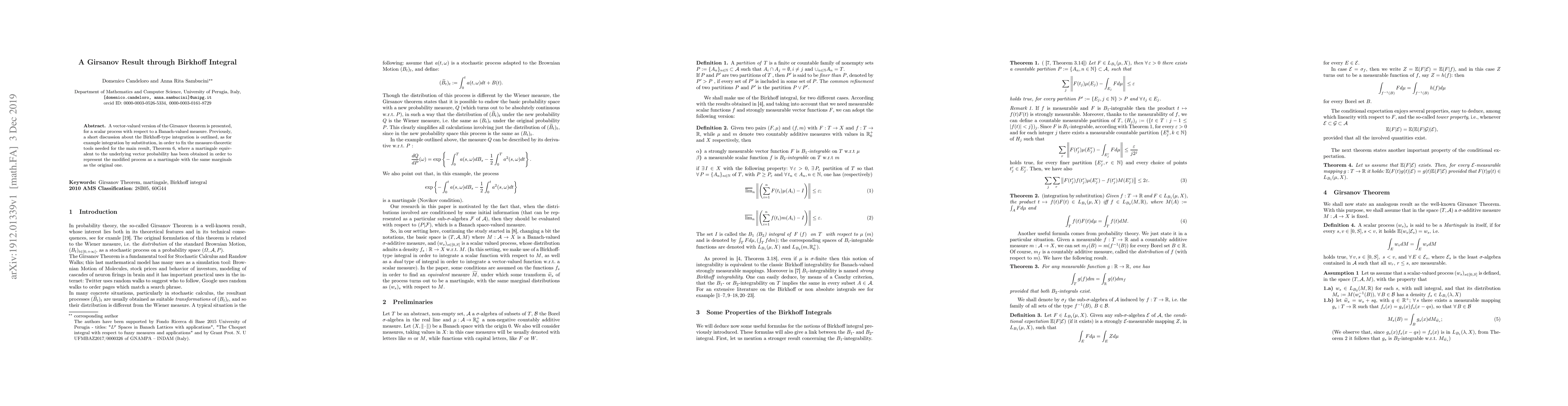 A vector-valued version of the Girsanov theorem is presented, for a scalar process with respect to a Banach-valued measure. Previously, a short discussion about the Birkhoff-type integration is outlined, as for example integration by substitution, in order to fix the measure-theoretic tools needed for the main result, Theorem 6, where a martingale equivalent to the underlying vector probability has been obtained in order to represent the modified process as a martingale with the same marginals as the original one.