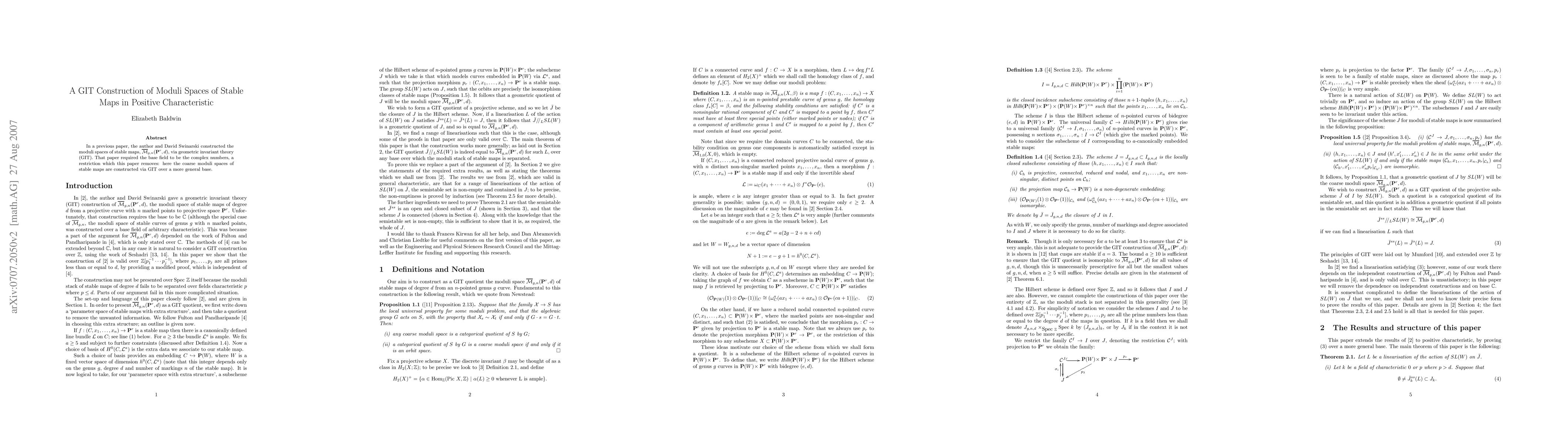 This paper extends previous work by constructing the moduli spaces of stable maps, \bar M_g,n(P^r,d), using geometric invariant theory (GIT) over positive characteristic fields, removing the previous restriction to the complex numbers. The coarse moduli spaces are built for a broader base.