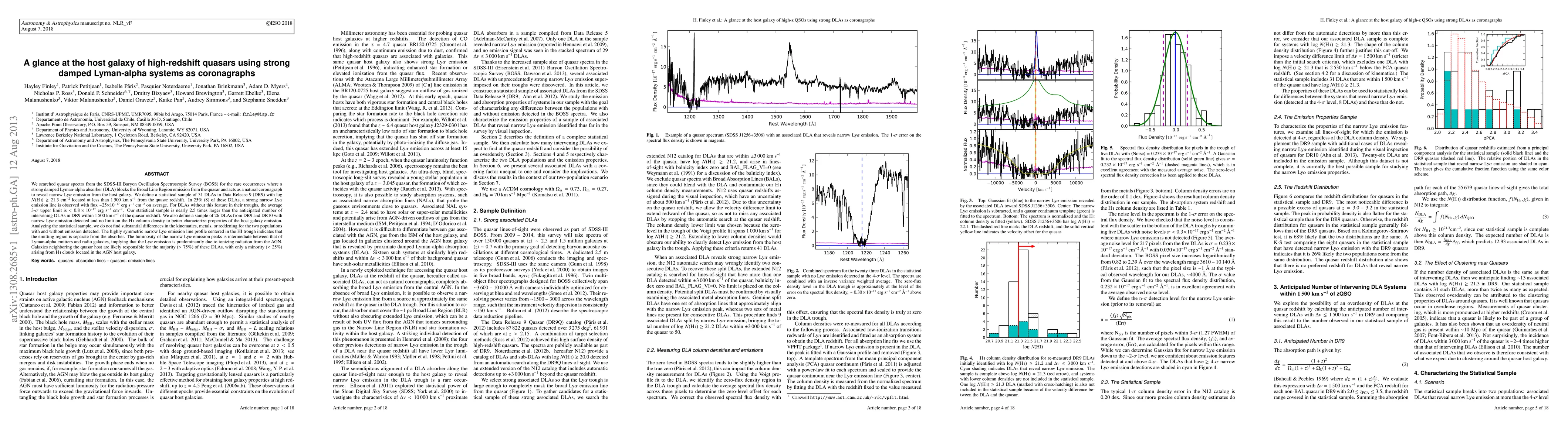 We searched quasar spectra from the SDSS-III Baryon Oscillation Spectroscopic Survey (BOSS) for the rare occurrences where a strong damped Lyman-alpha absorber (DLA) blocks the Broad Line Region emission from the quasar and acts as a natural coronagraph to reveal narrow Ly\alpha\ emission from the host galaxy. We define a statistical sample of 31 DLAs in Data Release 9 (DR9) with log N(HI) > 21.3 cm^-2 located at less than 1500 km s^-1 from the quasar redshift. In 25% (8) of these DLAs, a strong narrow Ly\alpha\ emission line is observed with flux ~25 x 10^-17 erg s^-1 cm^-2 on average. For DLAs without this feature in their troughs, the average 3-\sigma\ upper limit is < 0.8 x 10^-17 erg s^-1 cm^-2. Our statistical sample is nearly 2.5 times larger than the anticipated number of intervening DLAs in DR9 within 1500 km s^-1 of the quasar redshift. We also define a sample of 26 DLAs from DR9 and DR10 with narrow Ly\alpha\ emission detected and no limit on the HI column density to better characterize properties of the host galaxy emission. Analyzing the statistical sample, we do not find substantial differences in the kinematics, metals, or reddening for the two populations with and without emission detected. The highly symmetric narrow Ly\alpha\ emission line profile centered in the HI trough indicates that the emitting region is separate from the absorber. The luminosity of the narrow Ly\alpha\ emission peaks is intermediate between that of Lyman-alpha emitters and radio galaxies, implying that the Ly\alpha\ emission is predominantly due to ionizing radiation from the AGN. Galaxies neighboring the quasar host are likely responsible for the majority (> 75%) of these DLAs, with only a minority (< 25%) arising from HI clouds located in the AGN host galaxy.