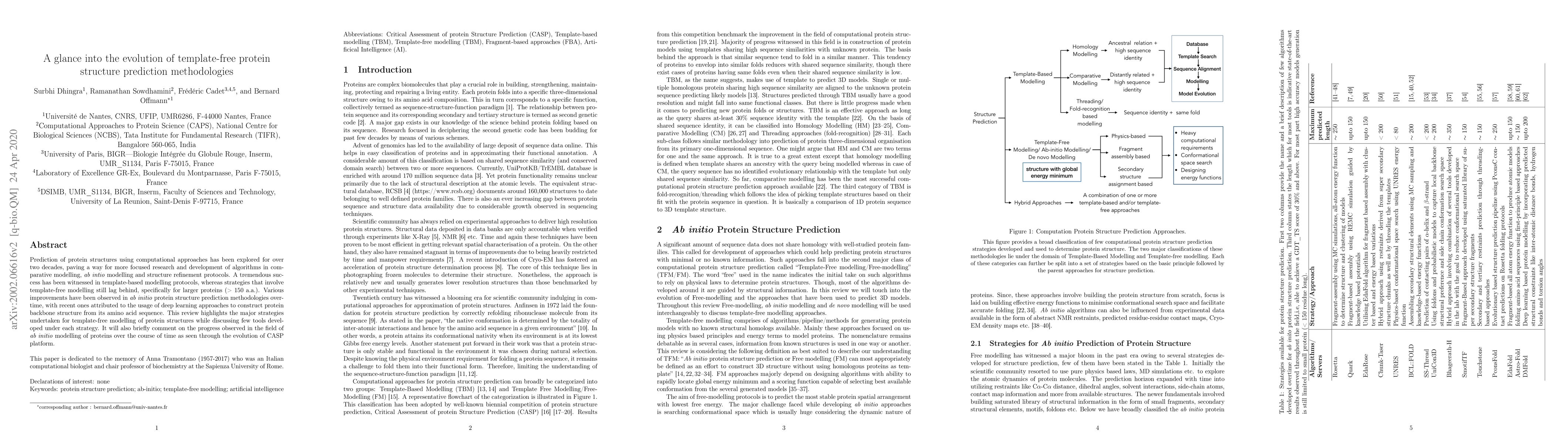 This paper reviews the evolution of template-free protein structure prediction methodologies, focusing on the advancements in ab initio modelling, particularly enhanced by deep learning techniques, and discusses the progress made in this area compared to template-based modelling, as observed through the CASP platform.