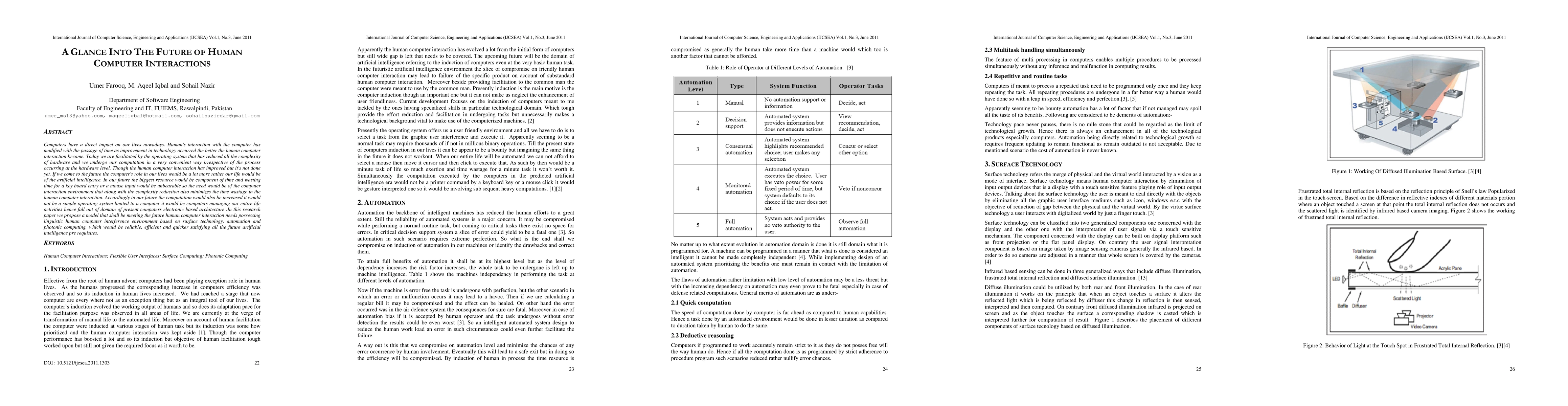 Computers have a direct impact on our lives nowadays. Human's interaction with the computer has modified with the passage of time as improvement in technology occurred the better the human computer interaction became. Today we are facilitated by the operating system that has reduced all the complexity of hardware and we undergo our computation in a very convenient way irrespective of the process occurring at the hardware level. Though the human computer interaction has improved but it's not done yet. If we come to the future the computer's role in our lives would be a lot more rather our life would be of the artificial intelligence. In our future the biggest resource would be component of time and wasting time for a key board entry or a mouse input would be unbearable so the need would be of the computer interaction environment that along with the complexity reduction also minimizes the time wastage in the human computer interaction. Accordingly in our future the computation would also be increased it would not be a simple operating system limited to a computer it would be computers managing our entire life activities hence fall out of domain of present computers electronic based architecture .In this research paper we propose a model that shall be meeting the future human computer interaction needs possessing linguistic human computer interference environment based on surface technology, automation and photonic computing, which would be reliable, efficient and quicker satisfying all the future artificial intelligence pre requisites.