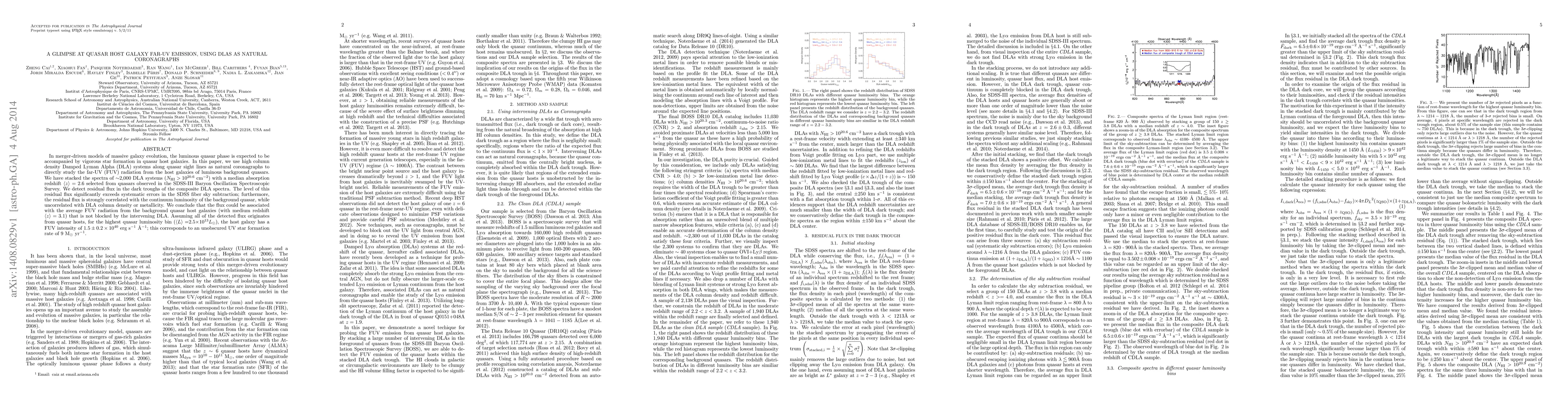 In merger-driven models of massive galaxy evolution, the luminous quasar phase is expected to be accompanied by vigorous star formation in quasar host galaxies. In this paper, we use high column density Damped Lyman Alpha (DLA) systems along quasar sight lines as natural coronagraphs to directly study the far-UV (FUV) radiation from the host galaxies of luminous background quasars. We have stacked the spectra of $\sim$2,000 DLA systems (N_HI>10^{20.6} cm^{-2}) with a median absorption redshift < z > = 2.6 selected from quasars observed in the SDSS-III Baryon Oscillation Spectroscopic Survey. We detect residual flux in the dark troughs of the composite DLA spectra. The level of this residual flux significantly exceeds systematic errors in the SDSS fiber sky subtraction; furthermore, the residual flux is strongly correlated with the continuum luminosity of the background quasar, while uncorrelated with DLA column density or metallicity. We conclude that the flux could be associated with the average FUV radiation from the background quasar host galaxies (with medium redshift < z > = 3.1) that is not blocked by the intervening DLA. Assuming all of the detected flux originates from quasar hosts, for the highest quasar luminosity bin (< L >= 2.5x 10^{13} L_sun), the host galaxy has a FUV intensity of 1.5 +/- 0.2 x 10^{40} erg s^{-1} A^{-1}; this corresponds to an unobscured UV star formation rate of 9 M_sun/yr.
