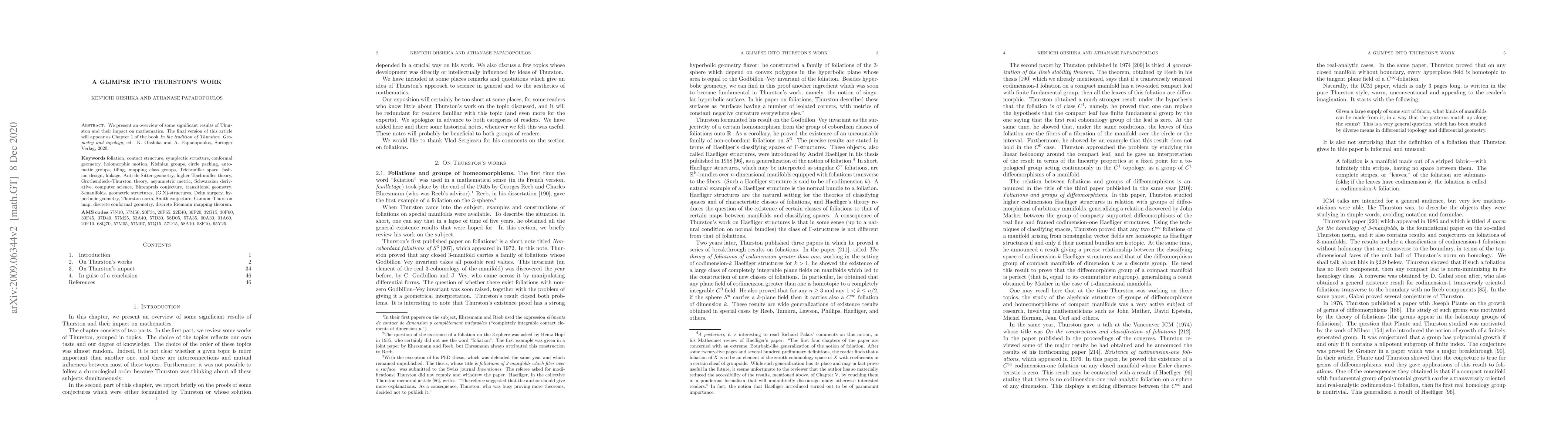 We present an overview of some significant results of Thurston and their impact on mathematics. The final version of this paper will appear as Chapter 1 of the book "In the tradition of Thurston: Geometry and topology", edited by K. Ohshika and A. Papadopoulos (Springer, 2020).