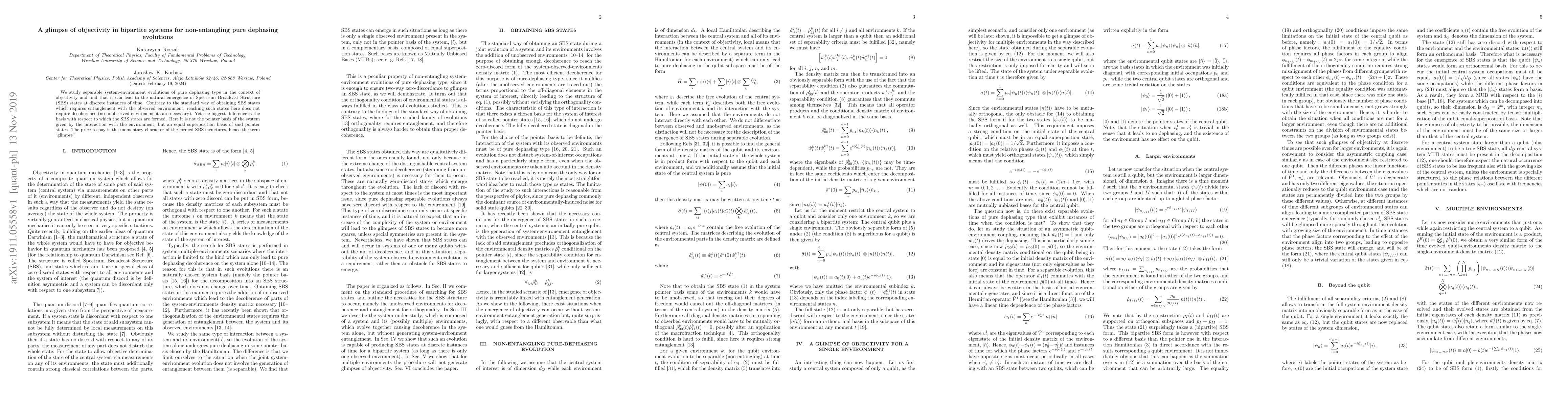 We study separable system-environment evolutions of pure dephasing type in the context of objectivity and find that it can lead to the natural emergence of Spectrum Broadcast Structure (SBS) states at discrete instances of time. Contrary to the standard way of obtaining SBS states which requires entanglement with the observed environment, reaching such states here does not require decoherence (no unobserved environements are necessary). Yet the biggest difference is the basis with respect to which the SBS states are formed. Here it is not the pointer basis of the system given by the interaction with the environment, but an equal superposition basis of said pointer states. The price to pay is the momentary character of the formed SBS structures, hence the term "glimpse".