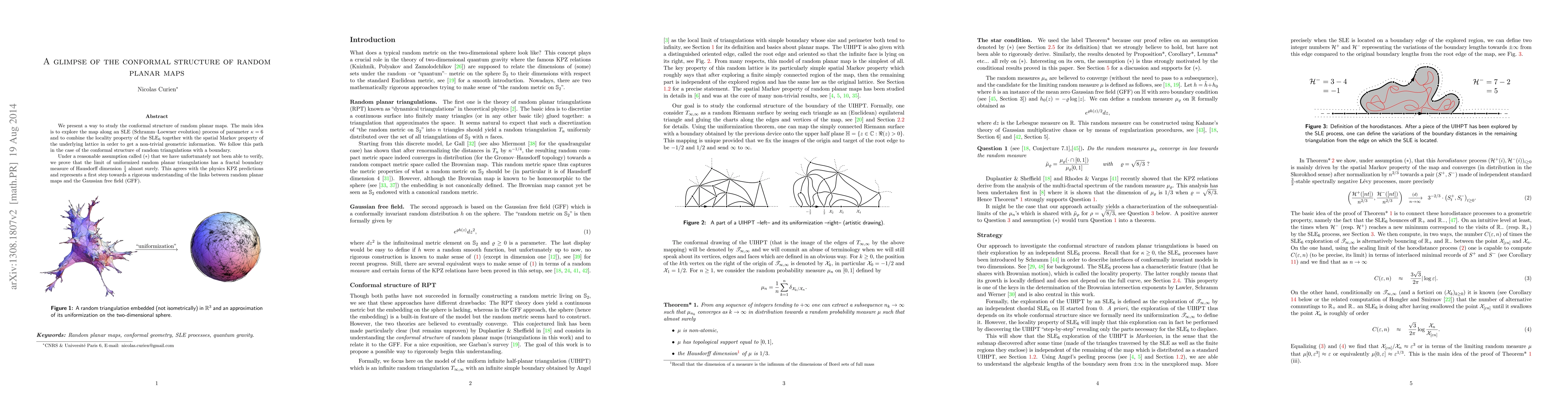 We present a way to study the conformal structure of random planar maps. The main idea is to explore the map along an SLE (Schramm--Loewner evolution) process of parameter $ \kappa = 6$ and to combine the locality property of the SLE_{6} together with the spatial Markov property of the underlying lattice in order to get a non-trivial geometric information. We follow this path in the case of the conformal structure of random triangulations with a boundary. Under a reasonable assumption called (*) that we have unfortunately not been able to verify, we prove that the limit of uniformized random planar triangulations has a fractal boundary measure of Hausdorff dimension $\frac{1}{3}$ almost surely. This agrees with the physics KPZ predictions and represents a first step towards a rigorous understanding of the links between random planar maps and the Gaussian free field (GFF).