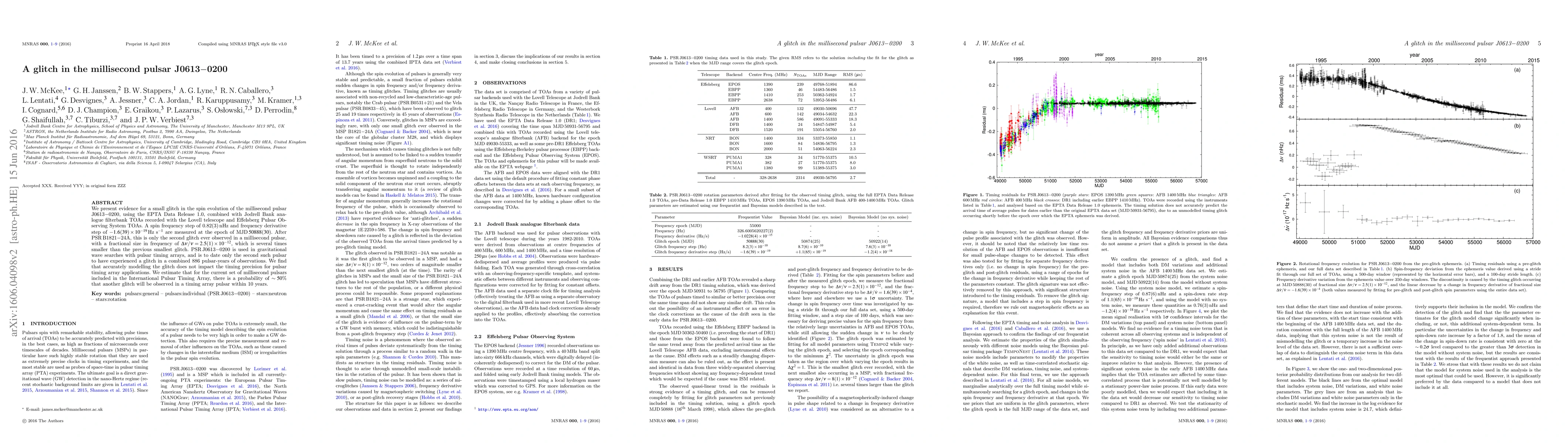 This paper reports a minor glitch in the millisecond pulsar J0613-0200, characterized by a spin frequency step of 0.82(3) nHz, marking only the second such event observed in a millisecond pulsar. The study finds that accurately modeling this glitch does not affect the precision needed for gravitational wave searches.