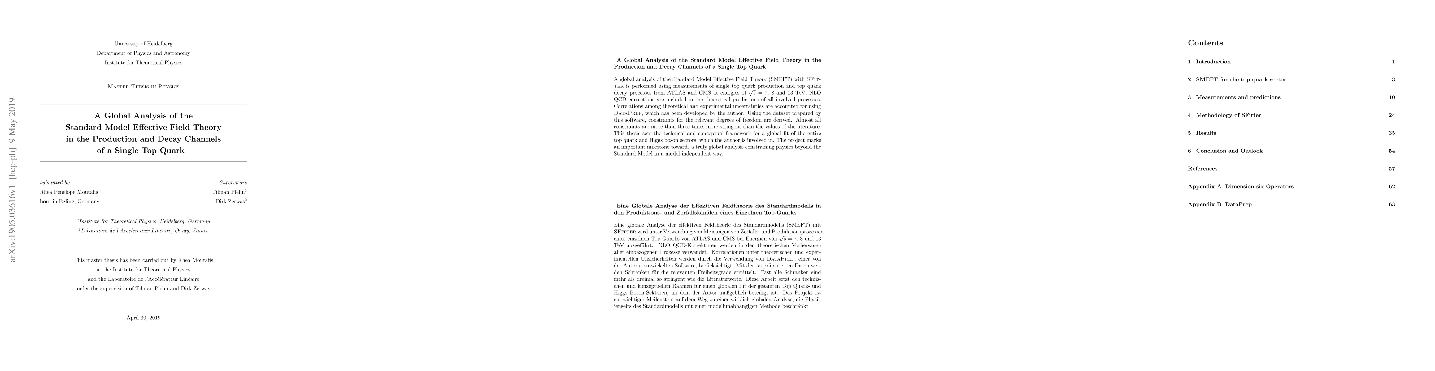 A global analysis of the Standard Model Effective Field Theory (SMEFT) with SFitter is performed using measurements of single top quark production and top quark decay processes from ATLAS and CMS at center-of-mass energies of 7, 8 and 13 TeV. NLO QCD corrections are included in the theoretical predictions of all involved processes. Correlations among theoretical and experimental uncertainties are accounted for using DataPrep, which has been developed by the author. Using the dataset prepared by this software, constraints for the relevant degrees of freedom are derived. Almost all constraints are more than three times more stringent than the values of the literature. This thesis sets the technical and conceptual framework for a global fit of the entire top quark and Higgs boson sectors, which the author is involved in. The project marks an important milestone towards a truly global analysis constraining physics beyond the Standard Model in a model-independent way.