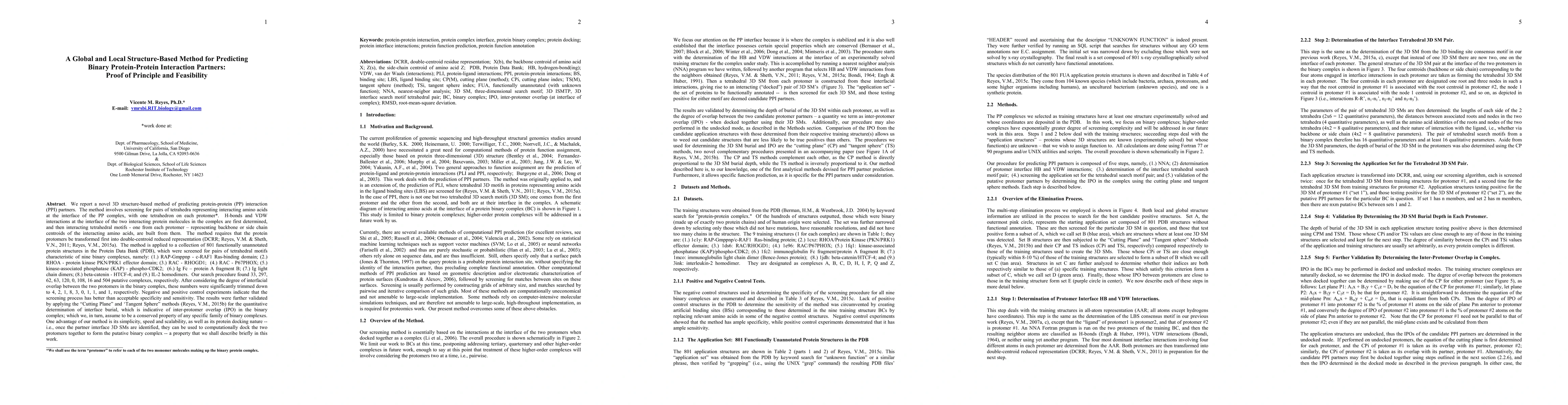 We report a 3D structure-based method of predicting protein-protein interaction partners. It involves screening for pairs of tetrahedra representing interacting amino acids at the interface of the protein-protein complex, with one tetrahedron on each protomer. H-bonds and VDW interactions at their interface are first determined and then interacting tetrahedral motifs (one from each protomer) representing backbone or side chain centroids of the interacting amino acids, are then built. The method requires that the protein protomers be transformed first into double-centroid reduced representation (Reyes, V.M. & Sheth, V.N., 2011; Reyes, V.M., 2015a). The method is applied to a set of 801 protein structures in the PDB with unknown functions, which were screened for pairs of tetrahedral motifs characteristic of nine binary complexes, namely: (1.) RAP-Gmppnp-cRAF1 Ras-binding domain; (2.) RHOA-protein kinase PKN/PRK1 effector domain; (3.) RAC-HOGD1; (4.) RAC-P67PHOX; (5.) kinase-associated phosphatase (KAP)-phosphoCDK2; (6.) Ig Fc-protein A fragment B; (7.) Ig light chain dimers; (8.) beta catenin-HTCF-4; and (9.) IL-2 homodimers. Our search method found 33, 297, 62, 63, 120, 0, 108, 16 and 504 putative complexes, respectively. After considering the degree of interface overlap between the protomers, these numbers were significantly trimmed down to 4, 2, 1, 8, 3, 0, 1, 1 and 1, respectively. Negative and positive control experiments indicate that the screening process has acceptable specificity and sensitivity. The results were further validated by applying the CP and TS methods (Reyes, V.M., 2015b) for the quantitative determination of interface burial and inter-protomer overlap in the complex. Our method is simple, fast and scalable, and once the partner interface 3D SMs are identified, they can be used to computationally dock the two protomers together to form the complex.