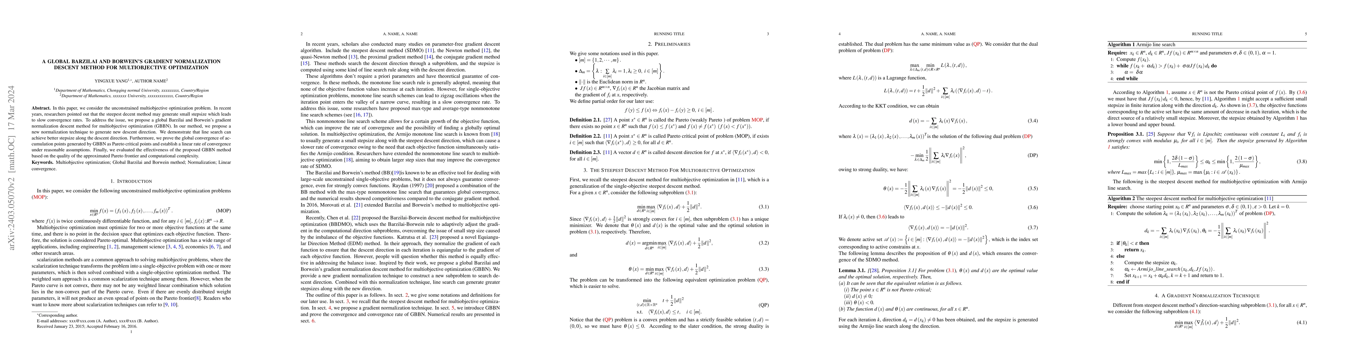 This paper introduces a global Barzilai and Borwein's gradient normalization descent method (GBBN) for multiobjective optimization, proposing a new normalization technique to enhance convergence rates and demonstrating its global convergence and linear rate of convergence. The effectiveness is evaluated by the quality of the approximated Pareto frontier and computational complexity.