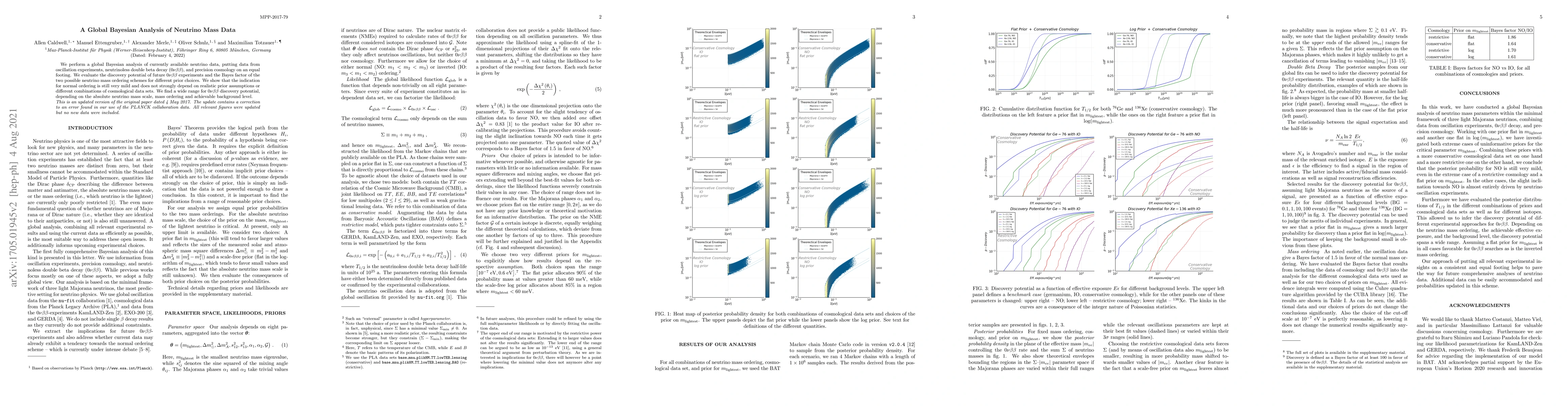 A global Bayesian analysis of neutrino mass data reveals a mild indication for normal ordering with varying discovery potential for future 0\u00D0\u00B2\u00BB experiments, depending on absolute neutrino mass scale, ordering, and background levels.