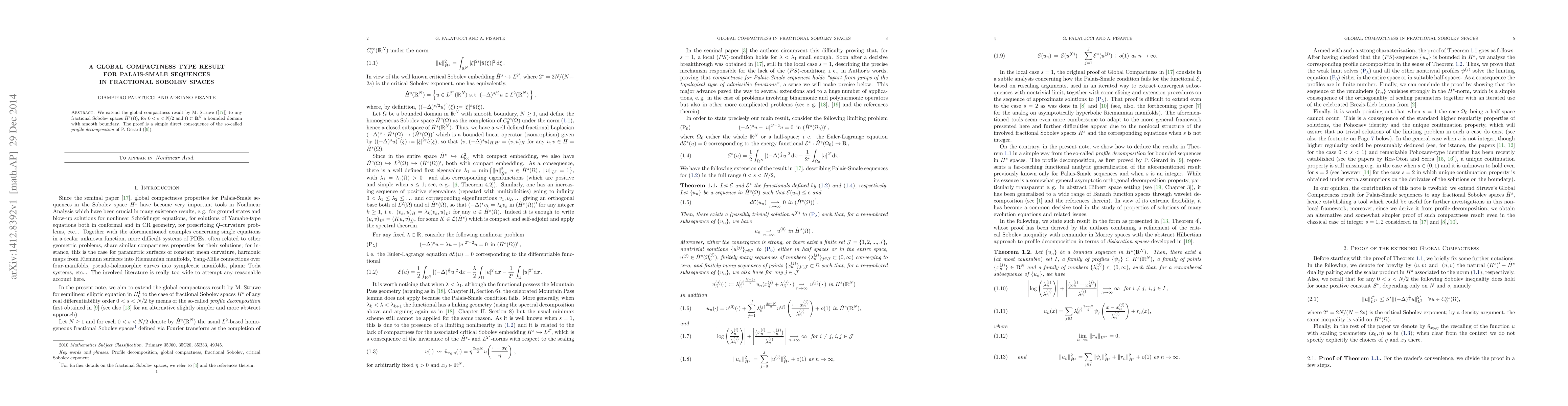 We extend the Global Compactness result by M. Struwe (Math. Z, 1984) to any