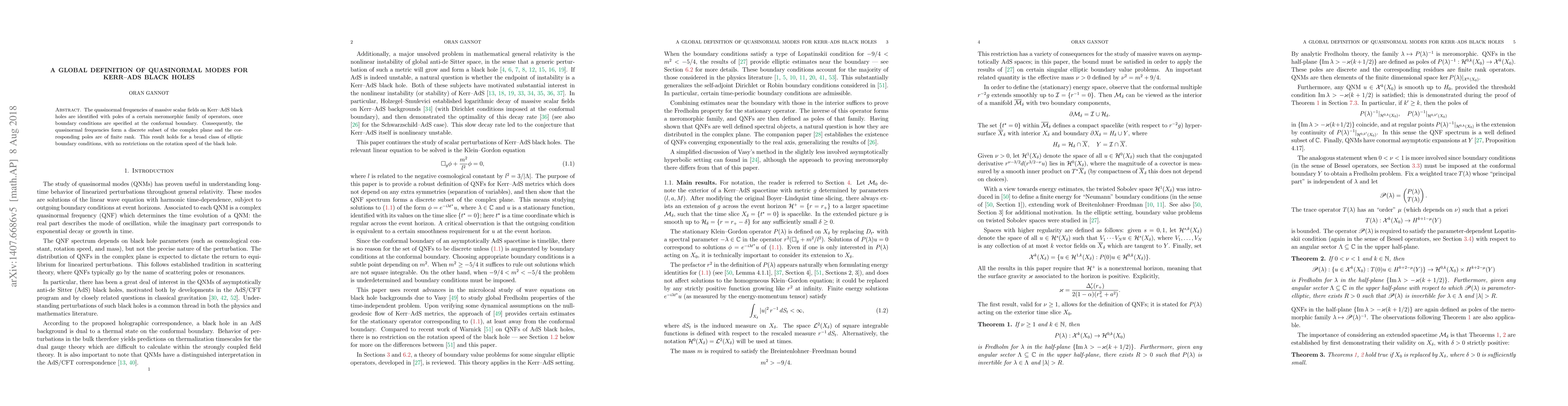 The quasinormal frequencies of massive scalar fields on Kerr-AdS black holes are identified with poles of a certain meromorphic family of operators, once boundary conditions are specified at the conformal boundary. Consequently, the quasinormal frequencies form a discrete subset of the complex plane and the corresponding poles are of finite rank. This result holds for a broad class of elliptic boundary conditions, with no restrictions on the rotation speed of the black hole.