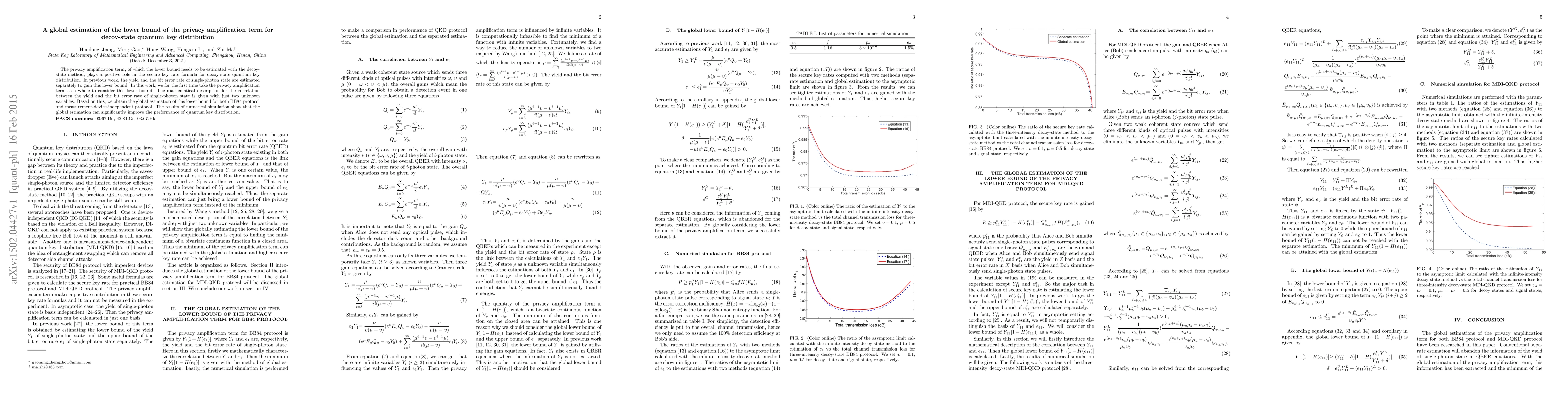 The privacy amplification term, of which the lower bound needs to be estimated with the decoy-state method, plays a positive role in the secure key rate formula for decoy-state quantum key distribution. In previous work, the yield and the bit error rate of single-photon state are estimated separately to gain this lower bound. In this work, we for the first time take the privacy amplification term as a whole to consider this lower bound. The mathematical description for the correlation between the yield and the bit error rate of single-photon state is given with just two unknown variables. Based on this, we obtain the global estimation of this lower bound for both BB84 protocol and measurement-device-independent protocol. The results of numerical simulation show that the global estimation can significantly improve the performance of quantum key distribution.