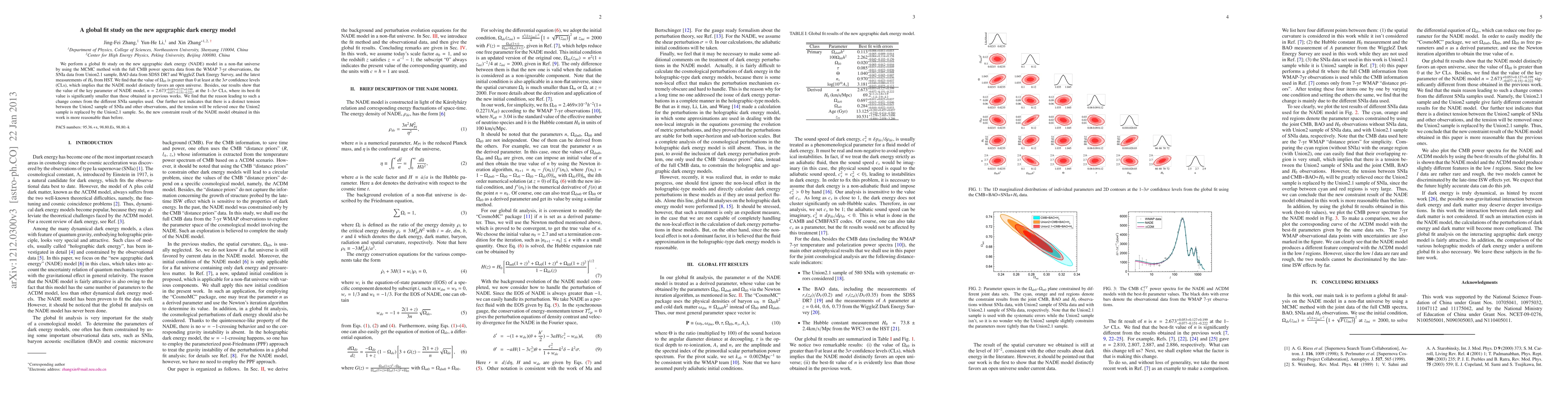 Researchers used data from WMAP, SNIa, BAO, and HST to study the new agegraphic dark energy model, finding that it favors an open universe and a key parameter with a smaller best-fit value than previous works.