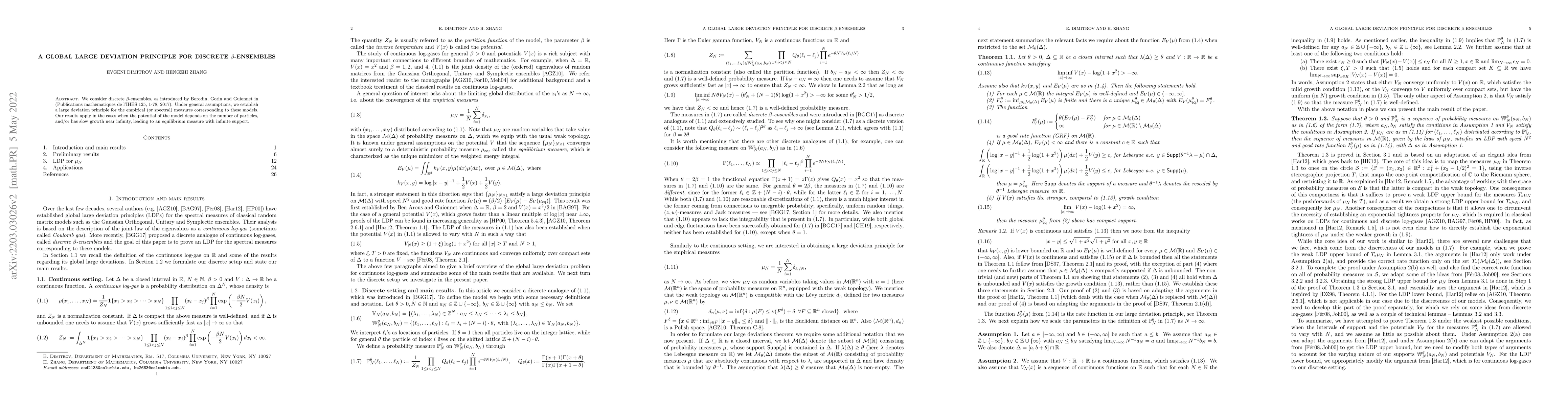 A global large deviation principle is established for discrete beta-ensembles, providing insight into the behavior of empirical measures in these models. The results apply to cases with slow-growth potentials near infinity, offering a foundation for understanding equilibrium measures with infinite support.