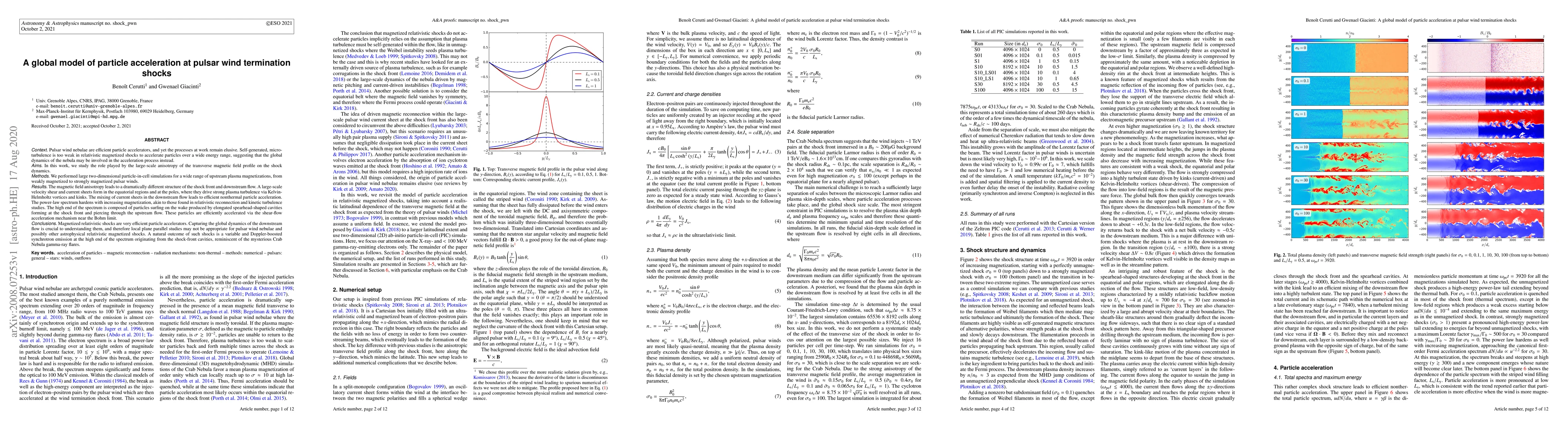 This study investigates the global dynamics of particle acceleration in pulsar wind nebulae, revealing that large-scale anisotropy and transverse magnetic fields drive strong plasma turbulence and efficient nonthermal acceleration. The research highlights the importance of capturing the global dynamics over local plane parallel studies for understanding these astrophysical relativistic magnetized shocks.