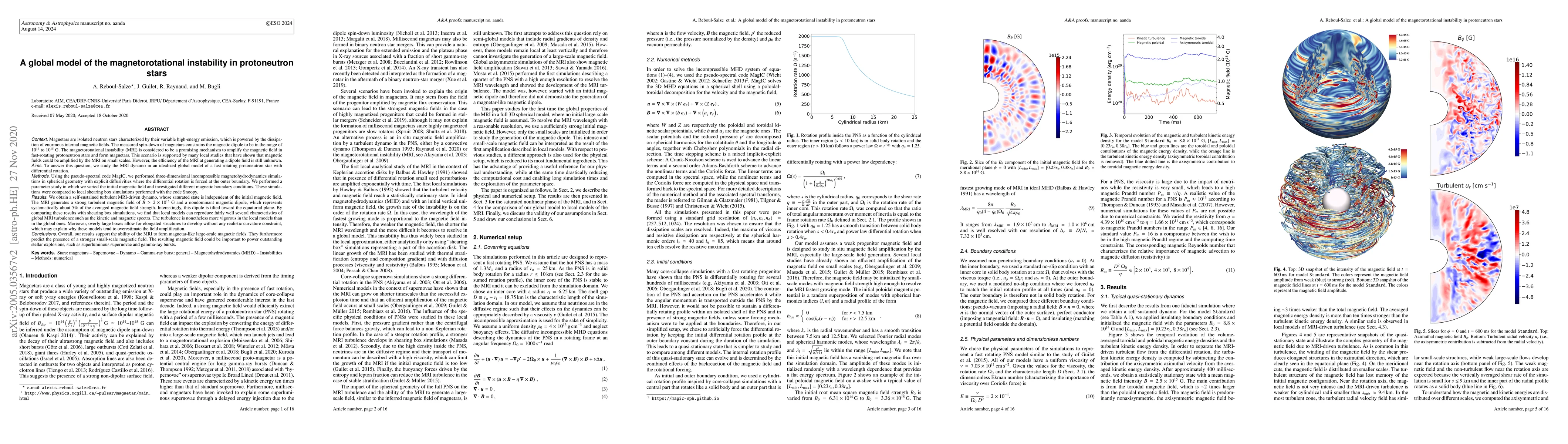 Magnetars are highly magnetized neutron stars whose magnetic dipole ranges from $10^{14}$ to $10^{15}$ G. The MRI is considered to be a promising mechanism to amplify the magnetic field in fast-rotating protoneutron stars and form magnetars. This scenario is supported by many local studies showing that magnetic fields could be amplified by the MRI on small scales. However, the efficiency of the MRI at generating a dipole field is still unknown. To answer this question, we study the MRI dynamo in an idealized global model of a fast rotating protoneutron star with differential rotation. We perform 3D incompressible MHD simulations in spherical geometry with explicit diffusivities where the differential rotation is forced at the outer boundary. We vary the initial magnetic field and investigated different magnetic boundary conditions. These simulations were compared to local shearing box simulations. We obtain a self-sustained turbulent MRI-driven dynamo, whose saturated state is independent of the initial magnetic field. The MRI generates a strong turbulent magnetic field of $B \geq 2\times 10^{15}$ G and a non-dominant magnetic dipole, which represents systematically about $5\%$ of the averaged magnetic field strength. Interestingly, this dipole is tilted towards the equatorial plane. We find that local shearing box models can reproduce fairly well several characteristics of global MRI turbulence such as the kinetic and magnetic spectra. The turbulence is nonetheless more vigorous in the local models than in the global ones. Overall, our results support the ability of the MRI to form magnetar-like large-scale magnetic fields. They furthermore predict the presence of a stronger small-scale magnetic field. The resulting magnetic field could be important to power outstanding stellar explosions, such as superluminous supernovae and GRBs.