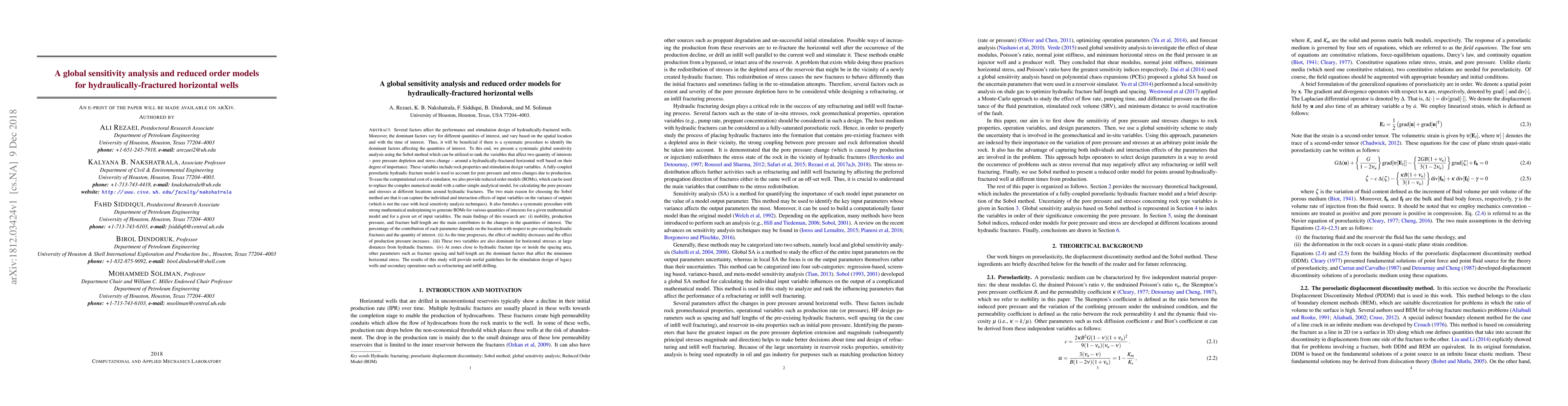 This research conducts a global sensitivity analysis using the Sobol method to rank variables affecting pore pressure depletion and stress change around hydraulically-fractured horizontal wells. The main findings are that mobility, production pressure, and fracture half-length are the most significant factors, with their importance varying with location and time.