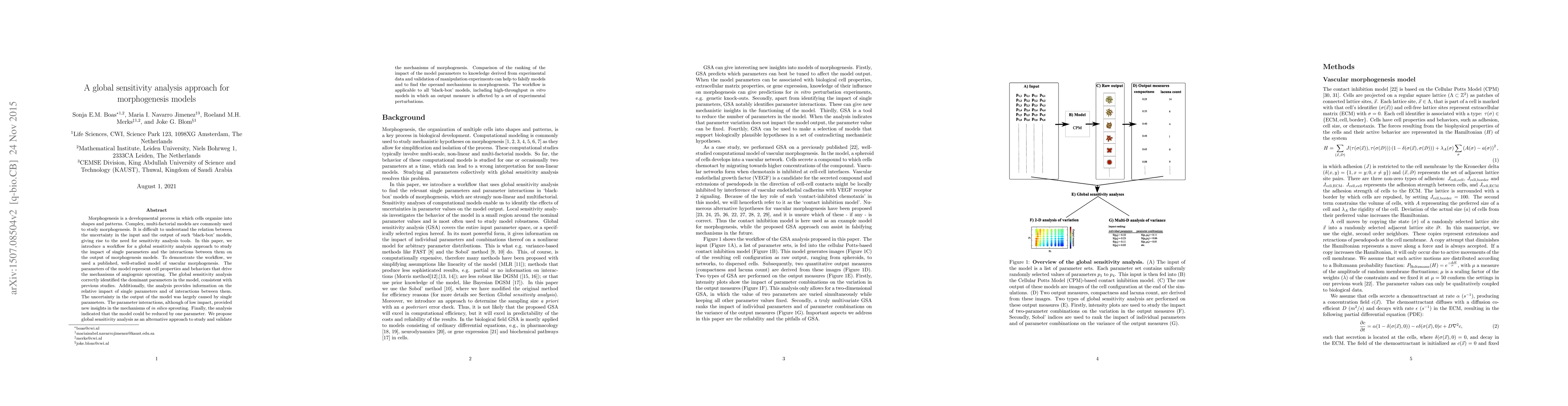 Morphogenesis is a developmental process in which cells organize into shapes and patterns. Complex, multi-factorial models are commonly used to study morphogenesis. It is difficult to understand the relation between the uncertainty in the input and the output of such `black-box' models, giving rise to the need for sensitivity analysis tools. In this paper, we introduce a workflow for a global sensitivity analysis approach to study the impact of single parameters and the interactions between them on the output of morphogenesis models. To demonstrate the workflow, we used a published, well-studied model of vascular morphogenesis. The parameters of the model represent cell properties and behaviors that drive the mechanisms of angiogenic sprouting. The global sensitivity analysis correctly identified the dominant parameters in the model, consistent with previous studies. Additionally, the analysis provides information on the relative impact of single parameters and of interactions between them. The uncertainty in the output of the model was largely caused by single parameters. The parameter interactions, although of low impact, provided new insights in the mechanisms of \emph{in silico} sprouting. Finally, the analysis indicated that the model could be reduced by one parameter. We propose global sensitivity analysis as an alternative approach to study and validate the mechanisms of morphogenesis. Comparison of the ranking of the impact of the model parameters to knowledge derived from experimental data and validation of manipulation experiments can help to falsify models and to find the operand mechanisms in morphogenesis. The workflow is applicable to all `black-box' models, including high-throughput \emph{in vitro} models in which an output measure is affected by a set of experimental perturbations.