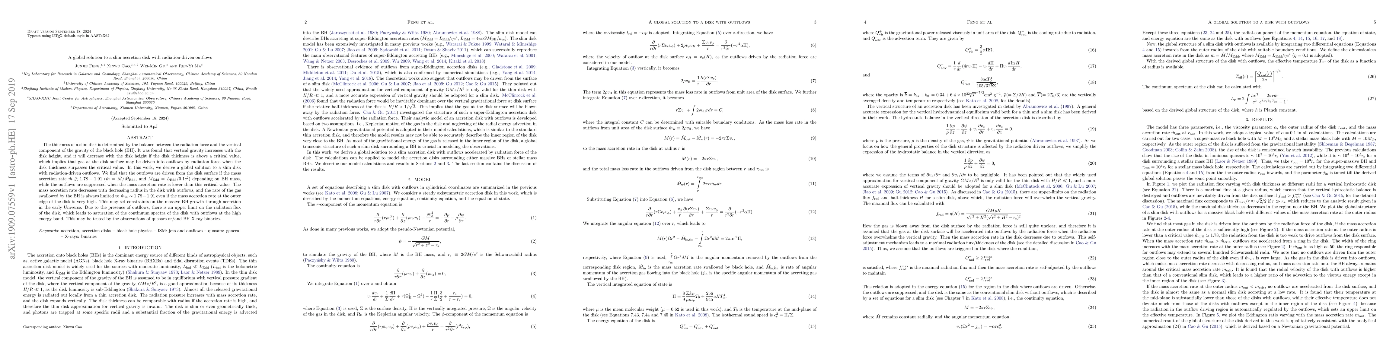 This paper presents a global solution for slim accretion disks around black holes, showing that radiation-driven outflows occur when the mass accretion rate exceeds a critical value. The study finds that the outflows limit the accretion rate and radiation flux, potentially constraining black hole growth and affecting the observed spectra of quasars and black hole X-ray binaries.