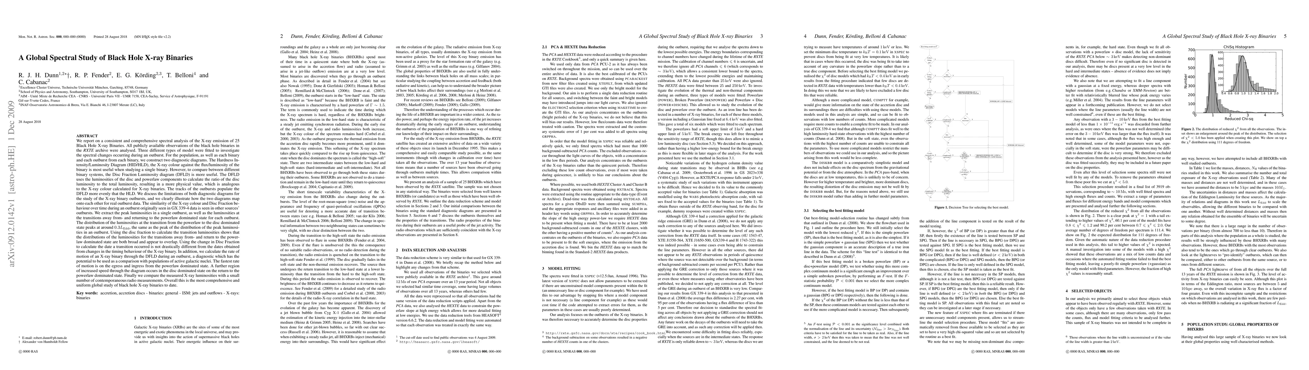 (Abridged) We report on a consistent and comprehensive spectral analysis of the X-ray emission of 25 Black Hole X-ray Binaries. All publicly available observations of the black hole binaries in the RXTE archive were analysed. Three different types of model were fitted to investigate the spectral changes occurring during an outburst. For the population, as well as each binary and each outburst from each binary, we construct two diagnostic diagrams. The Hardness Intensity/Luminosity Diagram (HID/HLD) is most useful when studying a single binary. However, to compare between different binary systems, the Disc Fraction Luminosity diagram (DFLD) is more useful. We discuss the limitations of both diagnostic diagrams for the study of the X-ray binary outbursts, and we clearly illustrate how the two diagrams map onto each other for real outburst data. We extract the peak luminosities in a single outburst, as well as the luminosities at the transitions away from- and returning to the powerlaw dominated state for each outburst. The distribution of the luminosities at the transition from the powerlaw to the disc dominated state peaks at around 0.3L_Edd, the same as the peak of the distribution of the peak luminosities in an outburst. Using the disc fraction to calculate the transition luminosities shows that the distributions of the luminosities for the transitions away from- and return to the powerlaw dominated state are both broad and appear to overlap. Finally we compare the measured X-ray luminosities with a small number of contemporaneous radio measurements. Overall this is the most comprehensive and uniform global study of black hole X-ray binaries to date.
