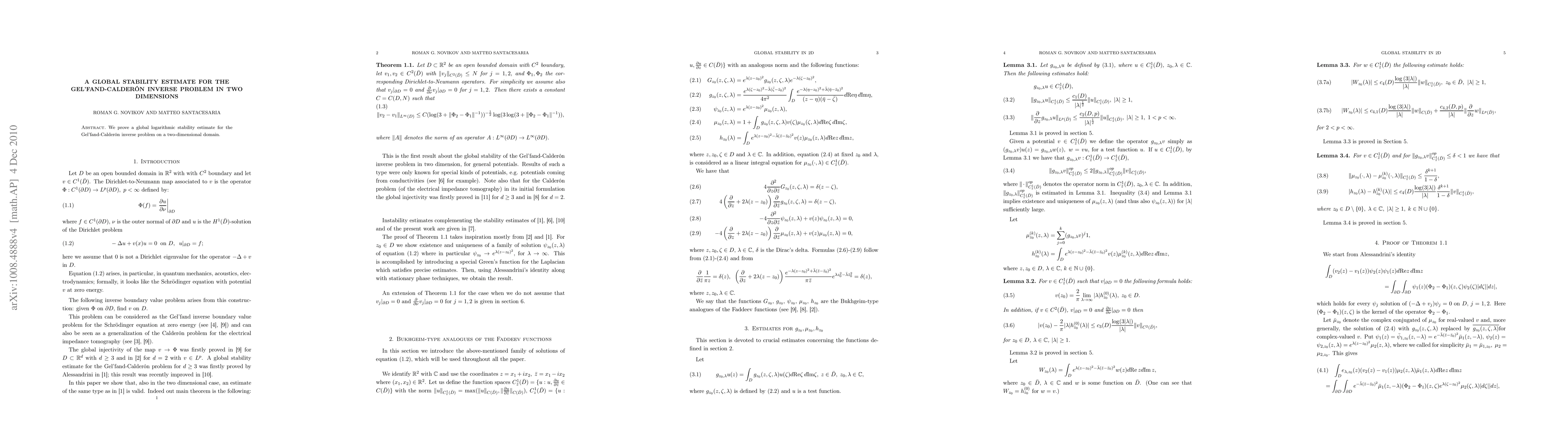 Summary: This paper establishes a global logarithmic stability estimate for solving the Gel'ffand-Calderon inverse problem in two dimensions, providing a significant advancement in understanding the problem's inherent sensitivity.