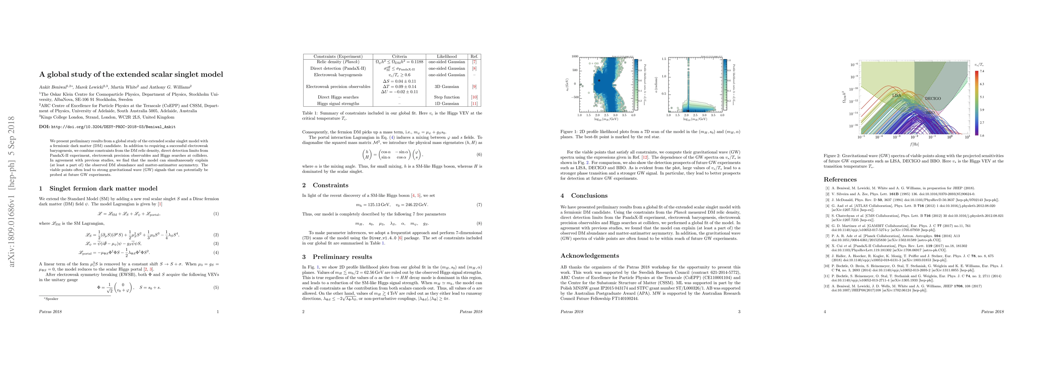 A global study of the extended scalar singlet model finds that it can explain dark matter abundance and matter-antimatter asymmetry while producing strong gravitational wave signals, making it a promising candidate for future detection.