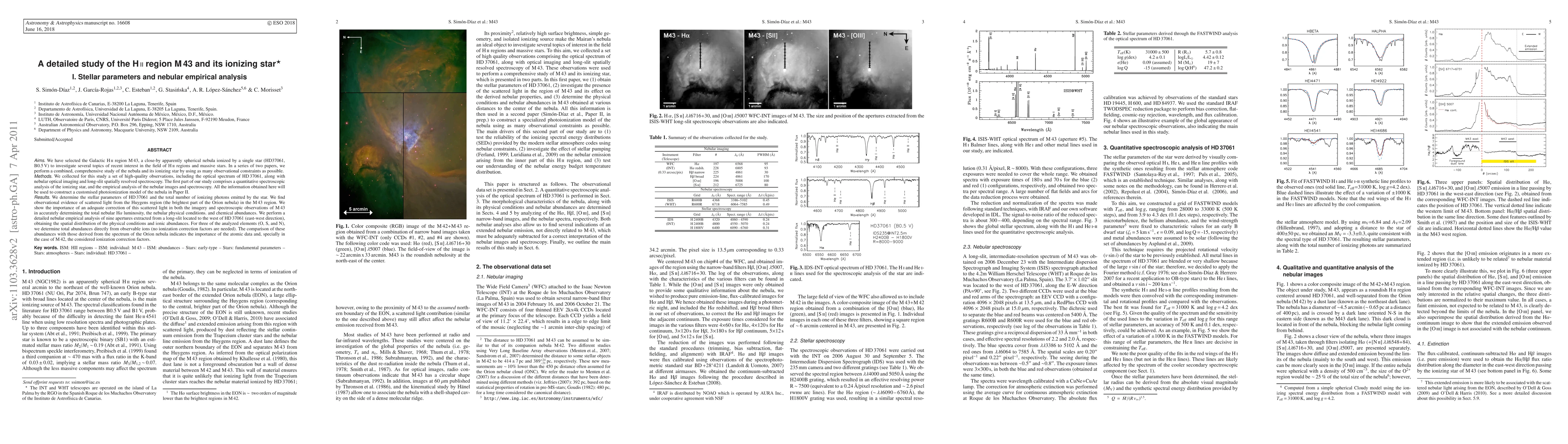 This study analyzes the HII region M43 and its ionizing star HD37061 through detailed observations, revealing the star's properties, nebular physical conditions, and elemental abundances. It emphasizes the importance of correcting for scattered light and atomic data accuracy for precise chemical analysis.