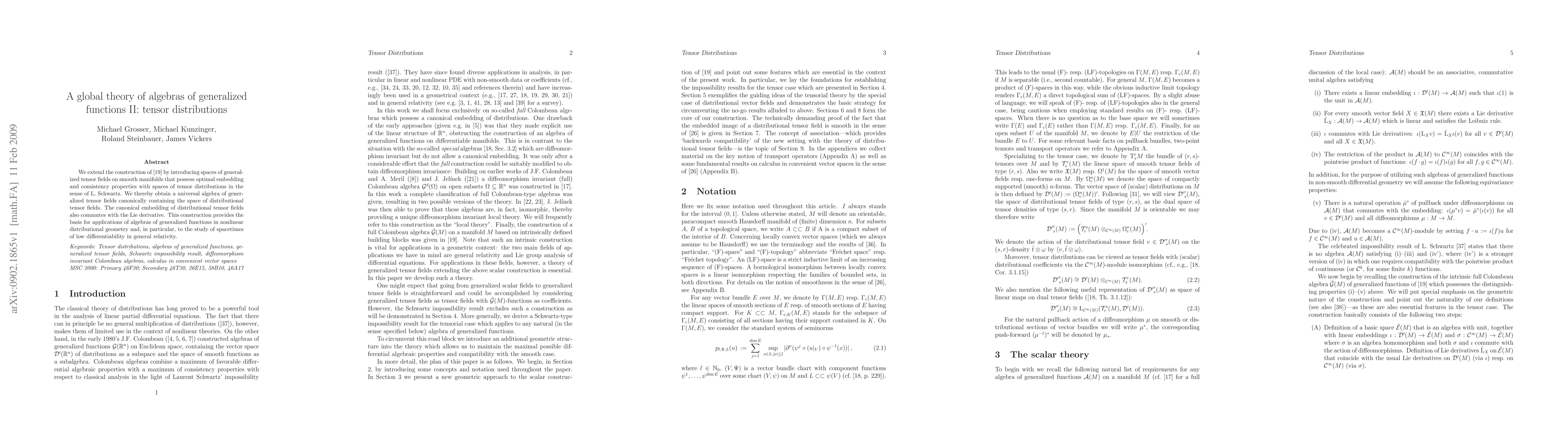 This research paper introduces spaces of generalized tensor fields on smooth manifolds with optimal embedding properties, enabling a universal algebra containing distributional tensor fields. This construction has implications for nonlinear distributional geometry and the study of spacetimes in general relativity.
