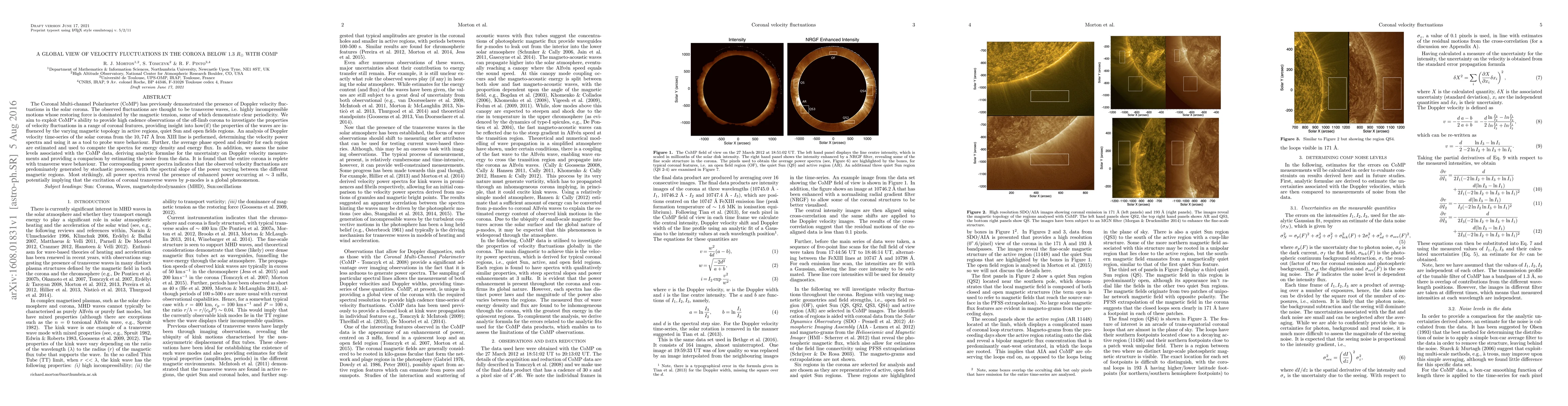 The Coronal Multi-channel Polarimeter (CoMP) has previously demonstrated the presence of Doppler velocity fluctuations in the solar corona. The observed fluctuations are thought to be transverse waves, i.e. highly incompressible motions whose restoring force is dominated by the magnetic tension, some of which demonstrate clear periodicity. We aim to exploit CoMP's ability to provide high cadence observations of the off-limb corona to investigate the properties of velocity fluctuations in a range of coronal features, providing insight into how(if) the properties of the waves are influenced by the varying magnetic topology in active regions, quiet Sun and open fields regions. An analysis of Doppler velocity time-series of the solar corona from the $10,747$~{\AA} Iron XIII line is performed, determining the velocity power spectra and using it as a tool to probe wave behaviour. Further, the average phase speed and density for each region are estimated and used to compute the spectra for energy density and energy flux. In addition, we assess the noise levels associated with the CoMP data, deriving analytic formulae for the uncertainty on Doppler velocity measurements and providing a comparison by estimating the noise from the data. It is found that the entire corona is replete with transverse wave behaviour. The corresponding power spectra indicates that the observed velocity fluctuations are predominately generated by stochastic processes, with the spectral slope of the power varying between the different magnetic regions. Most strikingly, all power spectra reveal the presence of enhanced power occurring at $ \sim3$~mHz, potentially implying that the excitation of coronal transverse waves by $p$-modes is a global phenomenon.