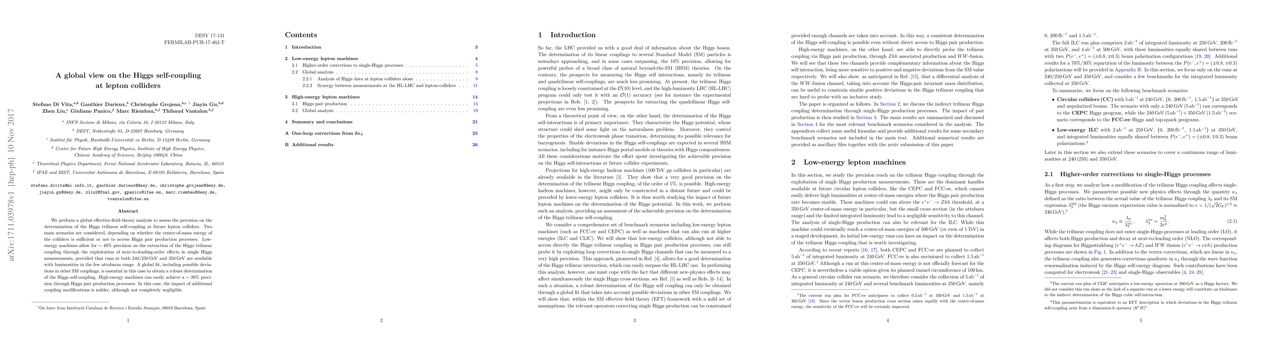 We perform a global effective-field-theory analysis to assess the precision on the determination of the Higgs trilinear self-coupling at future lepton colliders. Two main scenarios are considered, depending on whether the center-of-mass energy of the colliders is sufficient or not to access Higgs pair production processes. Low-energy machines allow for ~40% precision on the extraction of the Higgs trilinear coupling through the exploitation of next-to-leading-order effects in single Higgs measurements, provided that runs at both 240/250 GeV and 350 GeV are available with luminosities in the few attobarns range. A global fit, including possible deviations in other SM couplings, is essential in this case to obtain a robust determination of the Higgs self-coupling. High-energy machines can easily achieve a ~20% precision through Higgs pair production processes. In this case, the impact of additional coupling modifications is milder, although not completely negligible.