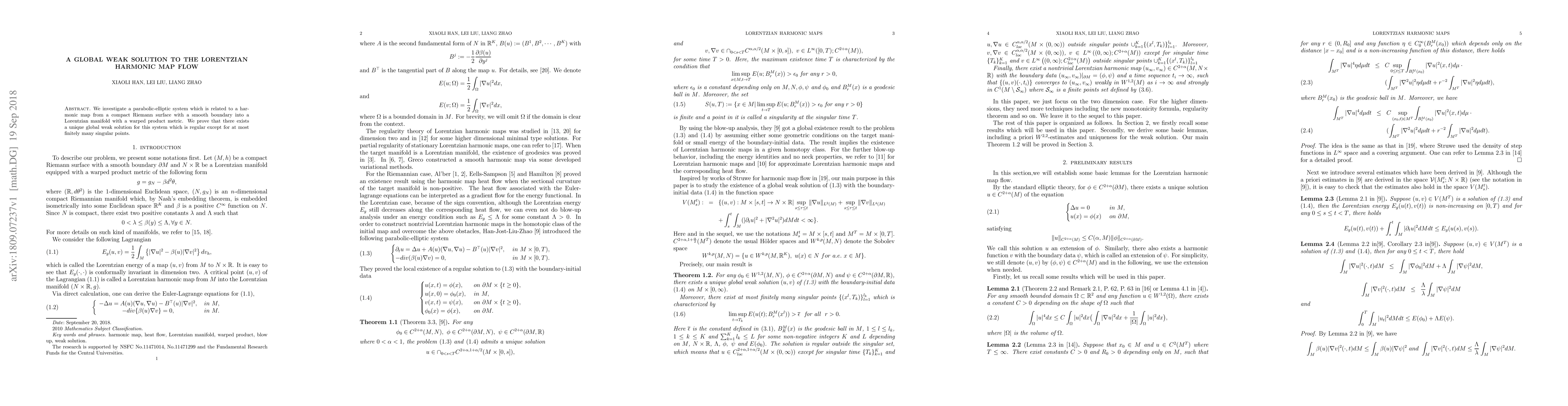 We investigate a parabolic-elliptic system which is related to a harmonic map from a compact Riemann surface with a smooth boundary into a Lorentzian manifold with a warped product metric. We prove that there exists a unique global weak solution for this system which is regular except for at most finitely many singular points.