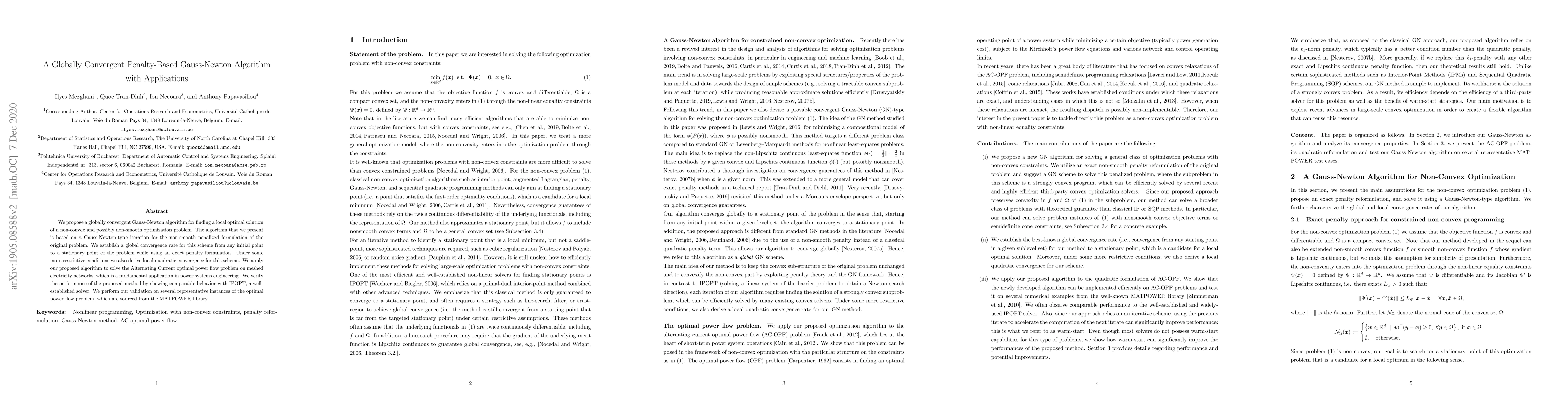 This paper introduces a globally convergent Gauss-Newton algorithm for solving non-convex and non-smooth optimization problems, establishing global and local convergence rates. The algorithm is applied to the Alternating Current optimal power flow problem, demonstrating comparable performance to IPOPT on representative instances.