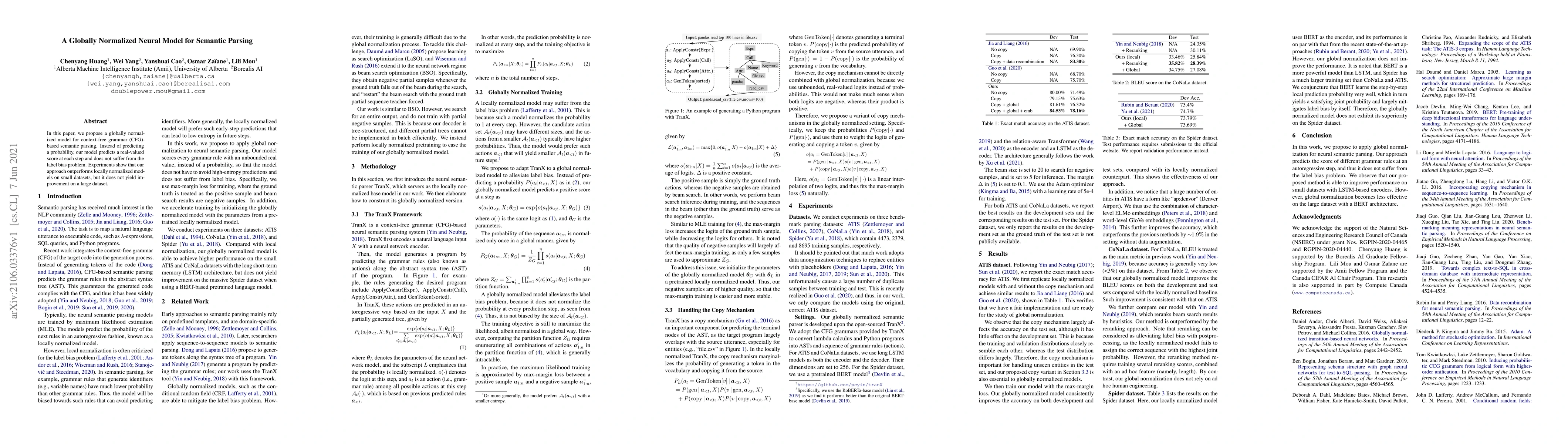 A new neural model for semantic parsing that predicts real-valued scores instead of probabilities improves performance on small datasets but doesn't yield better results on large datasets compared to locally normalized models.
