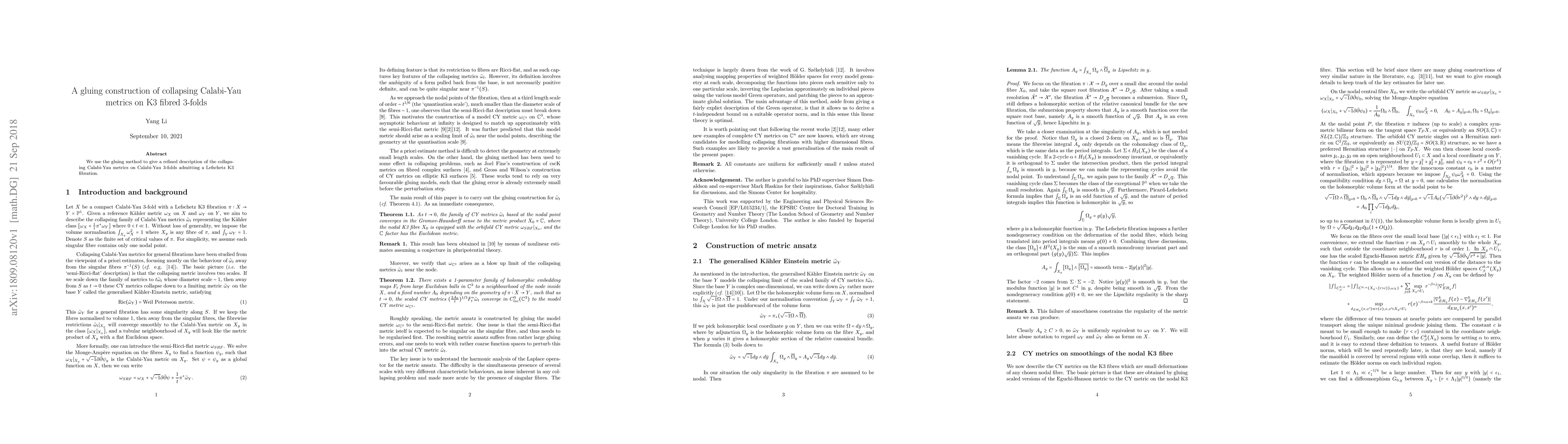 Summary: This paper employs a gluing technique to provide a detailed account of the behavior of collapsing Calabi-Yau metrics on K3 fibred Calabi-Yau 3-folds. The approach offers a refined understanding of these geometric structures.
