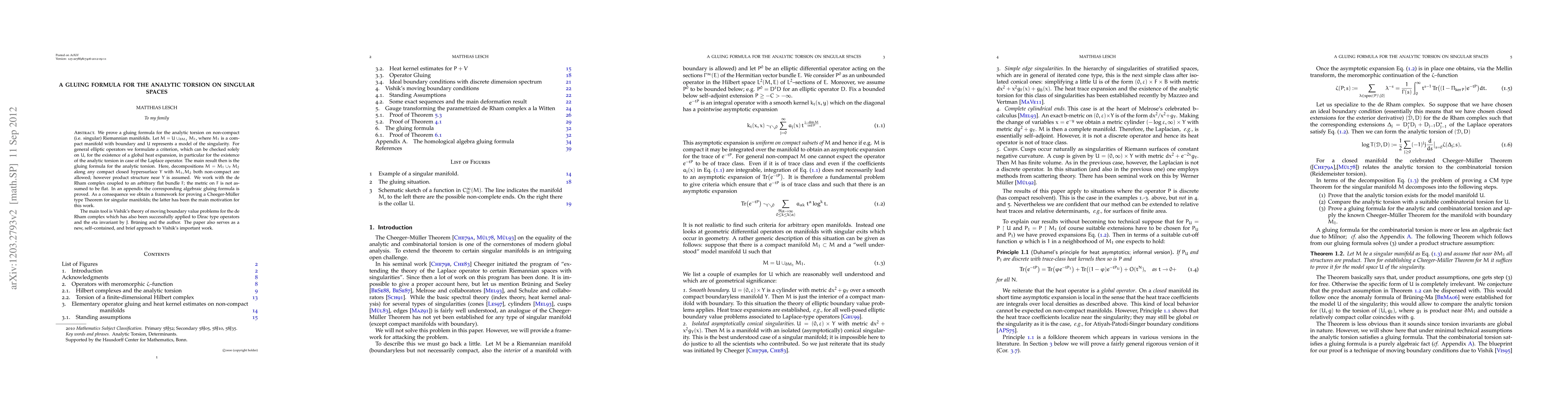 We prove a gluing formula for the analytic torsion on non-compact (i.e. singular) riemannian manifolds. Let M= U\cup M_1, where M_1 is a compact manifold with boundary and U represents a model of the singularity. For general elliptic operators we formulate a criterion, which can be checked solely on U, for the existence of a global heat expansion, in particular for the existence of the analytic torsion in case of the Laplace operator. The main result then is the gluing formula for the analytic torsion. Here, decompositions M=M_1\cup_W M_2 along any compact closed hypersurface W with M_1, M_2 both non-compact are allowed; however product structure near W is assumed. We work with the de Rham complex coupled to an arbitrary flat bundle F; the metric on F is not assumed to be flat. In an appendix the corresponding algebraic gluing formula is proved. As a consequence we obtain a framework for proving a Cheeger-M\"uller type Theorem for singular manifolds; the latter has been the main motivation for this work. The main tool is Vishik's theory of moving boundary value problems for the de Rham complex which has also been successfully applied to Dirac type operators and the eta invariant by J. Br\"uning and the author. The paper also serves as a new, self--contained, and brief approach to Vishik's important work.