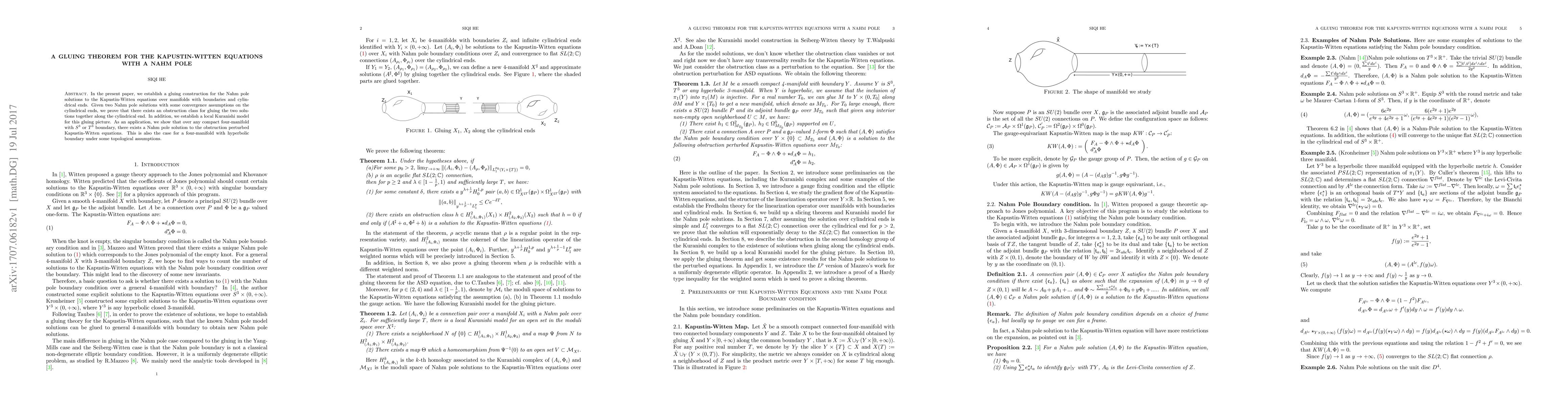 This paper establishes a gluing construction for Nahm pole solutions to the Kapustin-Witten equations on manifolds with boundaries and cylindrical ends, identifying an obstruction class for gluing two solutions together and providing a local Kuranishi model. It demonstrates the existence of such solutions over various types of four-manifolds with specified boundary conditions.
